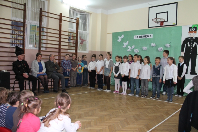 28 listopada 2014 r. w naszej szkole uroczyście obchodziliśmy "Barbórkę". Dzieci z klasy II i IV za pomocą piosenek i wierszy przybliżali słuchaczom radości i trudy pracy górnika. Po ich występie o specyfice pracy pod ziemią opowiadał zaprzyjaźniony z naszą szkołą pan Marian Parzyszek - emerytowany górnik z kopalni "Bogdanka". Jego prelekcja wzbudzała żywą reakcję dzieci, które chętnie włączały się do dyskusji.Do zobaczenia w przyszłym roku!