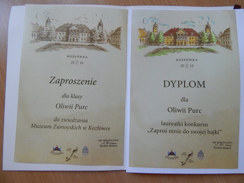 Wyróżnienie w konkursie plastycznym "Zaproś mnie do swojej bajki"-29.04.2016r.