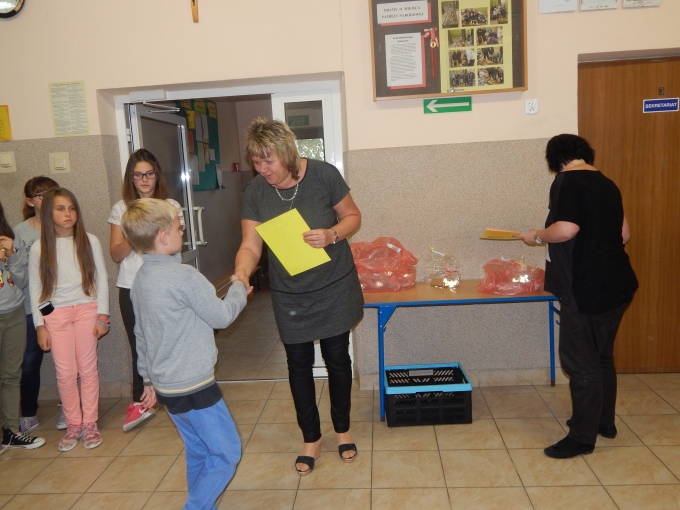 Rozdanie nagród w konkursie szkolnym "Jestem widoczny na drodze , jestem bezpieczny"- 09.10.2016 r.