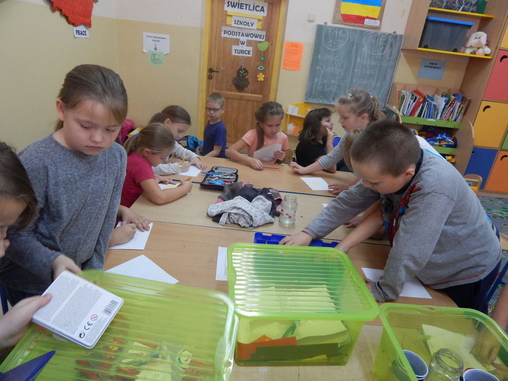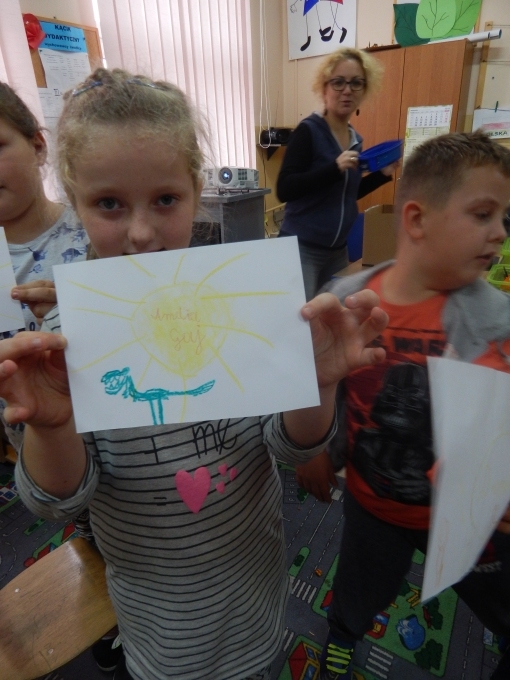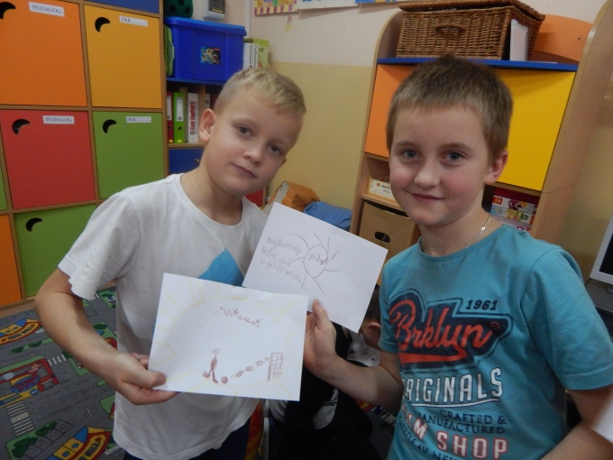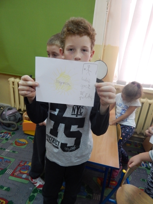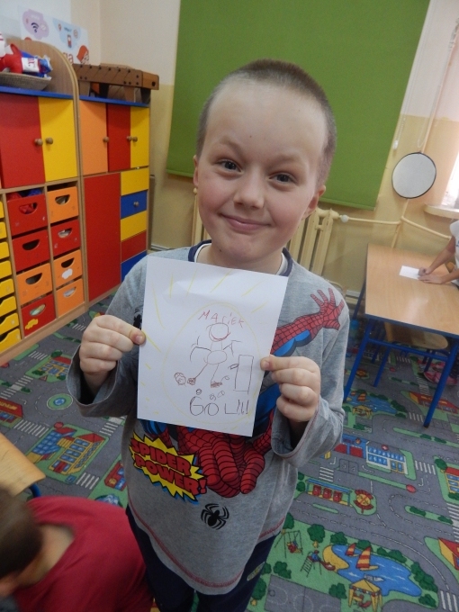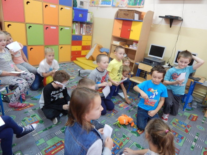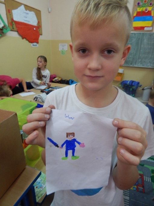 Na kolejnych zajęciach dzieci uczyły się, co i w jaki sposób warto powiedzieć o sobie w kontaktach bezpośrednich i przez Internet. Dowiedziały się , że obcym nie udziela się wszystkich informacji na swój temat. Tworzyły także swój symbol i wymyślały nick.