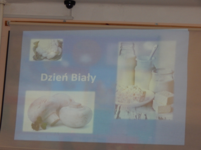 28 marca 2017 r. Samorząd Uczniowski zorganizował "Dzień biały". Młodzież przygotowała ciekawą prezentację dotyczącą wartości owoców i warzyw w kolorze bialym. Jak zwykle uczniowie z naszej szkoły włączyli się w uroczystość przynosząc białe rośliny i wykorzystując białe akcenty w swoim ubiorze.