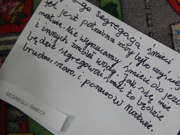 Na kolejnych zajęciach dzieci dowiedziały się, co to są kampanie społeczne. Uświadomiły sobie, że dotyczą one problemów świata i ludzi i są przeprowadzane po to, by zmieniać świat na lepsze. Uczyły się także, jak zbudować własny przekaz dotyczący ważnego dla nich problemu.