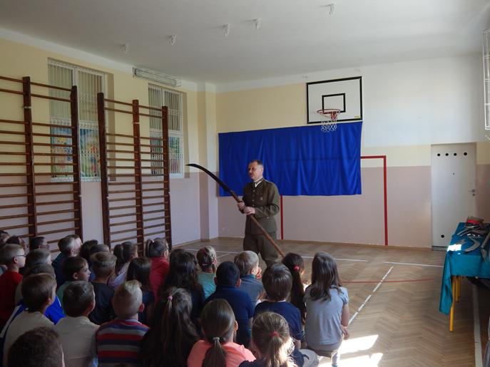 W piątek, 19 maja 2017r., naszą szkołę odwiedził pan Grzegorz Sztal- członek Lubelskiego Oddziału Stowarzyszenia Miłośników Dawnej Broni i Barwy, a jednocześnie członek Roztoczańskiej Konnej Straży Ochrony Przyrody im. 25. Pułku Ułanów Wielkopolskich. Nasz gość przybliżył wszystkim czasy, w których żył i walczył Tadeusz Kościuszko. Dużą atrakcją dla słuchających intrygujących opowieści pana Grzegorza o życiu żołnierzy był pokaz zebranego przez niego uzbrojenia.