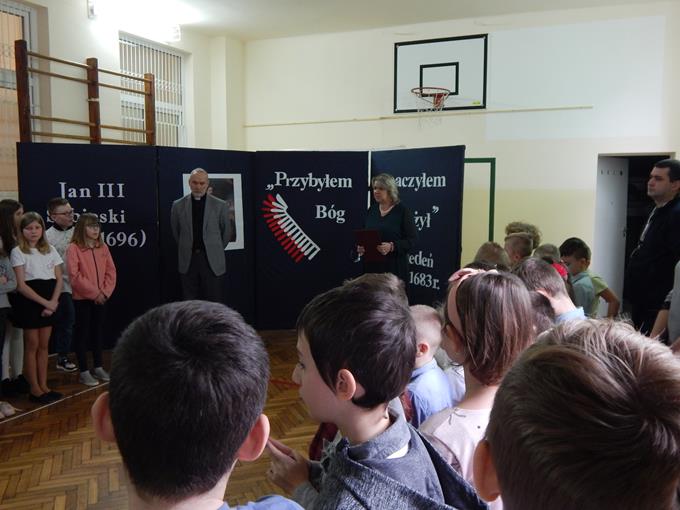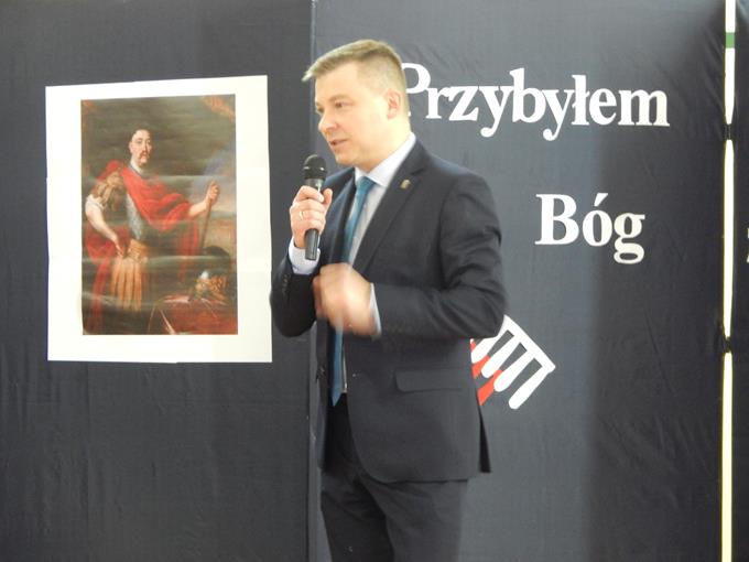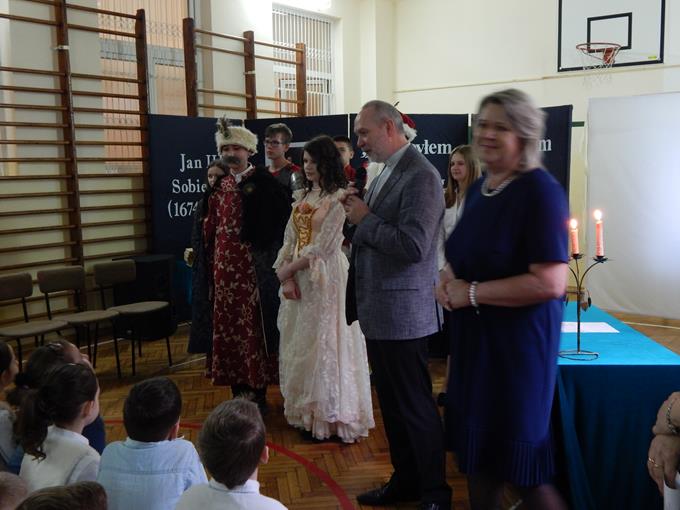 Gościliśmy również Pana Lecha Kutrzepę z Gminy Rybczewice- jednego z twórców Szlaku Jana III Sobieskiego, który biegnie przez 6 gmin województwa lubelskiego, w tym przez teren gminy Wólka. Pan |Lech opowiedział nam o pamiątkach, miejscach i dziedzictwie szlacheckim związanym z obecnością rodu Sobieskich położonym „na szlaku”. Pan Wójt Edwin Gortat mówił o programie współpracy regionalnej gmin położonych na szlaku króla Jana III Sobieskiego oraz o korzyściach, jakie on przyniósł Gminie Wólka, bazując na lokalnych zasobach i potencjale. Tego dnia uczniowie w ramach lekcji historii poszerzali swoją wiedzę na temat nie tylko wojen Sobieskiego z Turkami, ale również o prowadzonej przez Niego polityce wewnętrznej i zewnętrznej.
