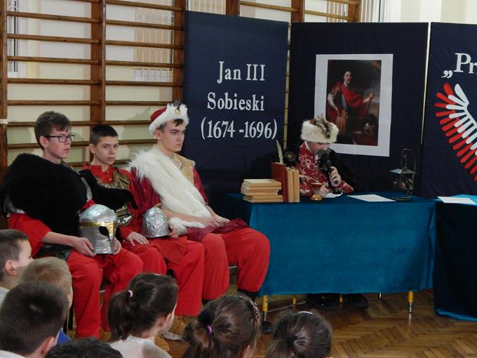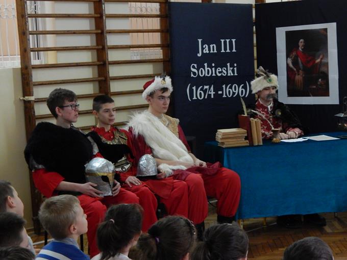 Wtorek był dniem poświęconym Janowi III Sobieskiemu. Klasa VIII pod kierunkiem Pani Moniki Garbacz przygotowała przedstawienie szkolne pt. ”Jan III Sobieski- Lew Lechistanu, Obrońca Wiary” prezentujące życie i dokonania króla. Uczniowie wcielili się w rolę Jana III Sobieskiego i Marysieńki. Udzielili też wspólnie z Dyrekcją szkoły, Panią Moniką Garbacz oraz Księdzem Krzysztofem Kołodziejczykiem wywiadu dla TV Lublin, który został wyemitowany w popołudniowym wydaniu Panoramy Lubelskiej (4 II o godz.17:30) oraz do gazety „Gość Niedzielny”(całość ukaże się w 8 numerze pisma). Na uroczystości obecni byli- Wójt Gminy Wólka, mieszkańcy Turki oraz rodzice Naszych uczniów. Klasy młodsze w ramach zajęć świetlicowych wysłuchały słuchowiska- Jan III Sobieski i Jego husaria.
