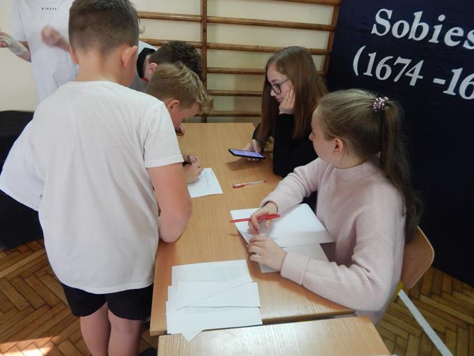 W piątek rozegrany został Międzyklasowy turniej sportowo- historyczny o „Tarczę Sobieskiego” przygotowany przez Pana Kacpra Olszaka i Panią Monikę Garbacz. W turnieju brały udział 4-osobowe reprezentacje uczniów z klas 4-6. Turniej składał się z części: sportowej- 8 konkurencji sportowych i części historycznej- quizu historycznego dotyczącego wiedzy o postaci patrona.