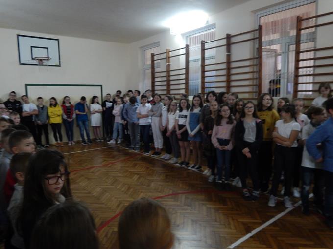 Na zakończenie Tygodnia z Królem Janem III Sobieskim po raz pierwszy cała społeczność szkolna zaśpiewała hymn szkoły, którego słowa napisała Pani Wioletta Tryk, a muzykę skomponował Pan Jarosław Falba. Tym punktem zakończyliśmy tydzień z Królem Janem III Sobieskim, który przyniósł nam wiele ciekawych i niezapomnianych wrażeń, a przede wszystkim przybliżył postać przyszłego patrona szkoły.