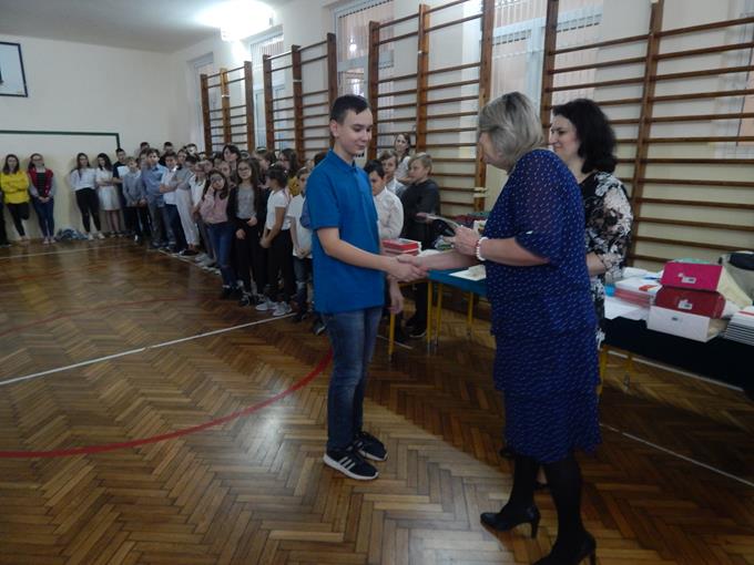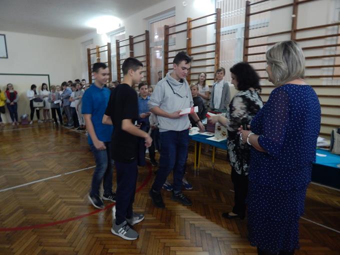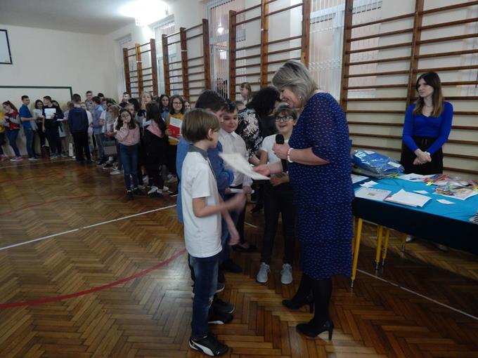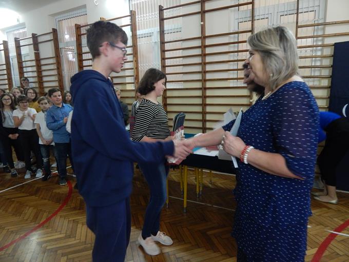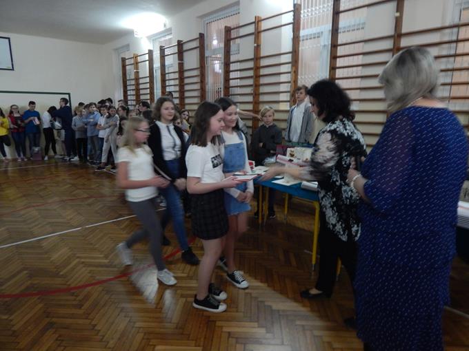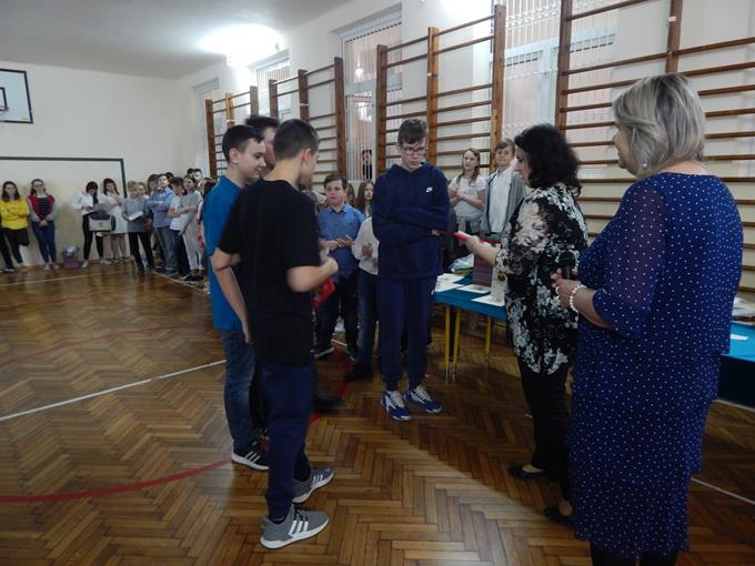 Następnie podczas apelu szkolnego Pani Dyrektor dokonała podsumowania tygodnia- wręczono nagrody w konkursach- na najładniejszy portret króla Jana III Sobieskiego, najlepszy list do króla, na logo szkoły oraz w turnieju o „Tarczę Sobieskiego”.