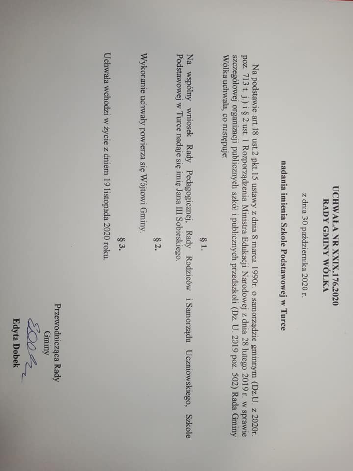 Od 19 listopada nasza szkoła nosi imię Jana III Sobieskiego.