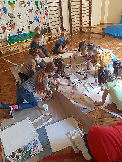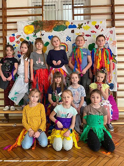 Półkolonia minęła błyskawicznie, nie zabrakło tańców, projekcji bajek, przygotowywania galaktycznych słoików, rozgrywek olimpijskich oraz wariacji malarskich.