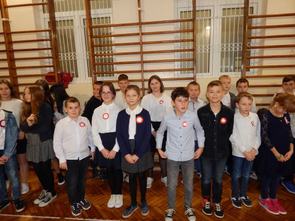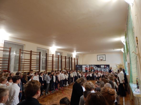 Już po raz piąty nasza szkoła i przedszkole włączyły się do kolejnej edycji akcji Ministerstwa Edukacji i Nauki „Szkoła do hymnu”. 10 listopada (w ostatnim dniu roboczym przed Narodowym Świętem Niepodległości) o symbolicznej godzinie 11:11 uczniowie oraz nauczyciele wspólnie odśpiewali nasz hymn narodowy.