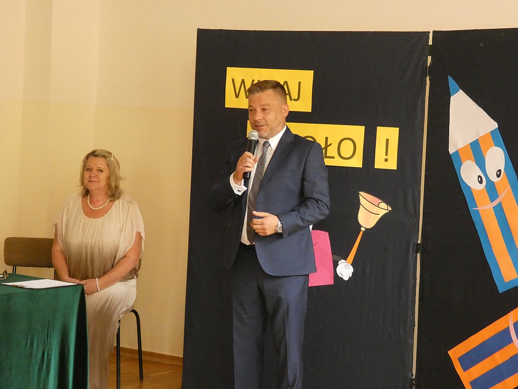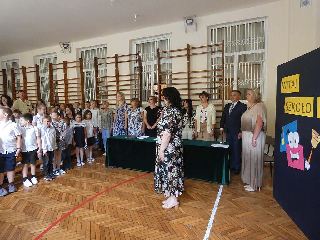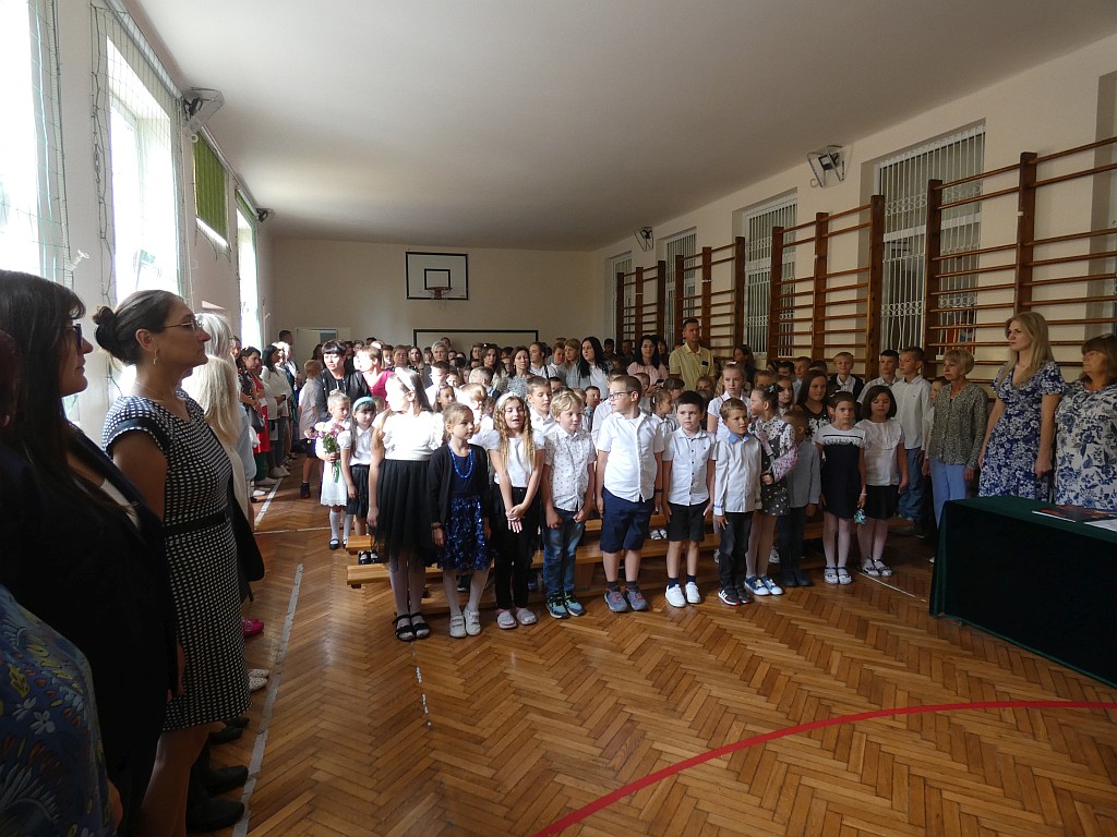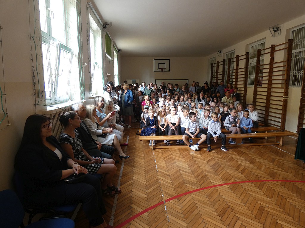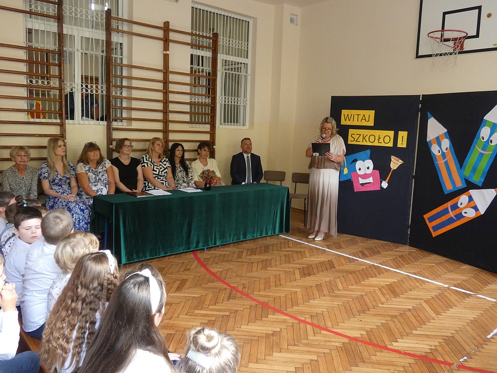 Uroczyste rozpoczęcie roku szkolnego odbyło się w sali gimnastycznej. Wprowadzony został sztandar szkoły, odśpiewany został hymn państwowy. Część oficjalną prowadziła pani Monika Garbacz. Następnie pani Dyrektor powitała zgromadzonych i zabrał głos Pan Wójt. Po wysłuchaniu istotnych informacji uczniowie udali się swoich sal na spotkania z wychowawcami.