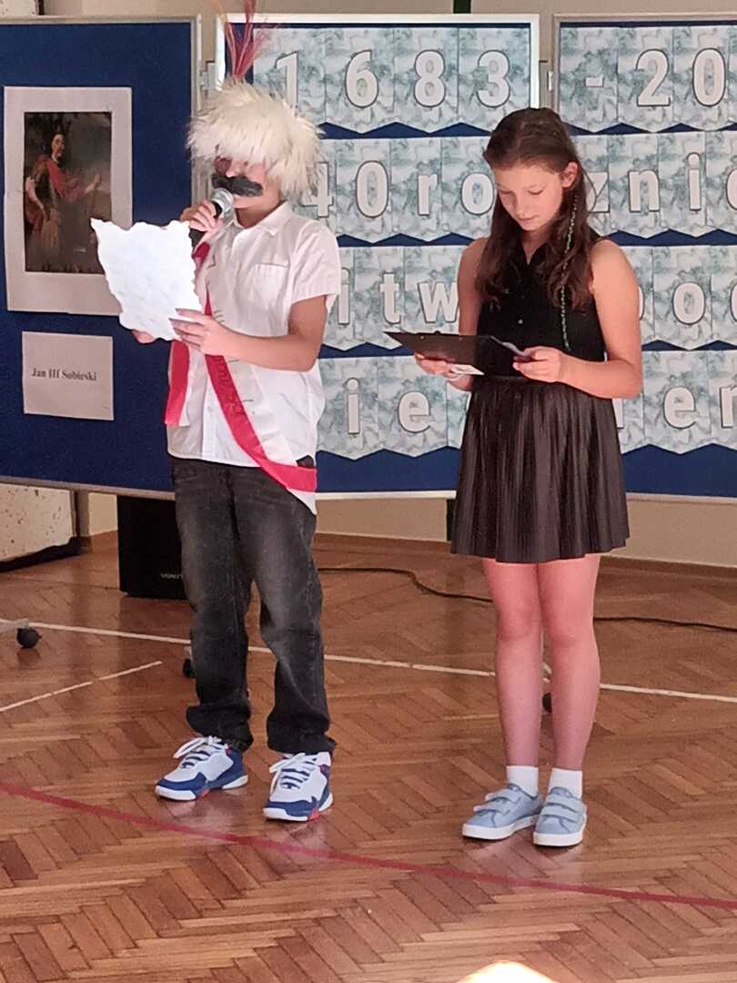 W poniedziałek w naszej szkole odbył się apel poświęcony tej ważnej rocznicy. Uczniowie z klasy 6 przypomnieli przebieg bitwy i jej następstwa. Odtworzyliśmy film z uroczystości nadania szkole imienia Jana III Sobieskiego przedstawiający powrót króla po bitwie do ukochanej Marysieńki i biesiadę sarmacką jaką zorganizowano dla kompanów króla.