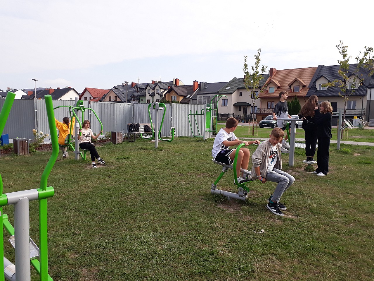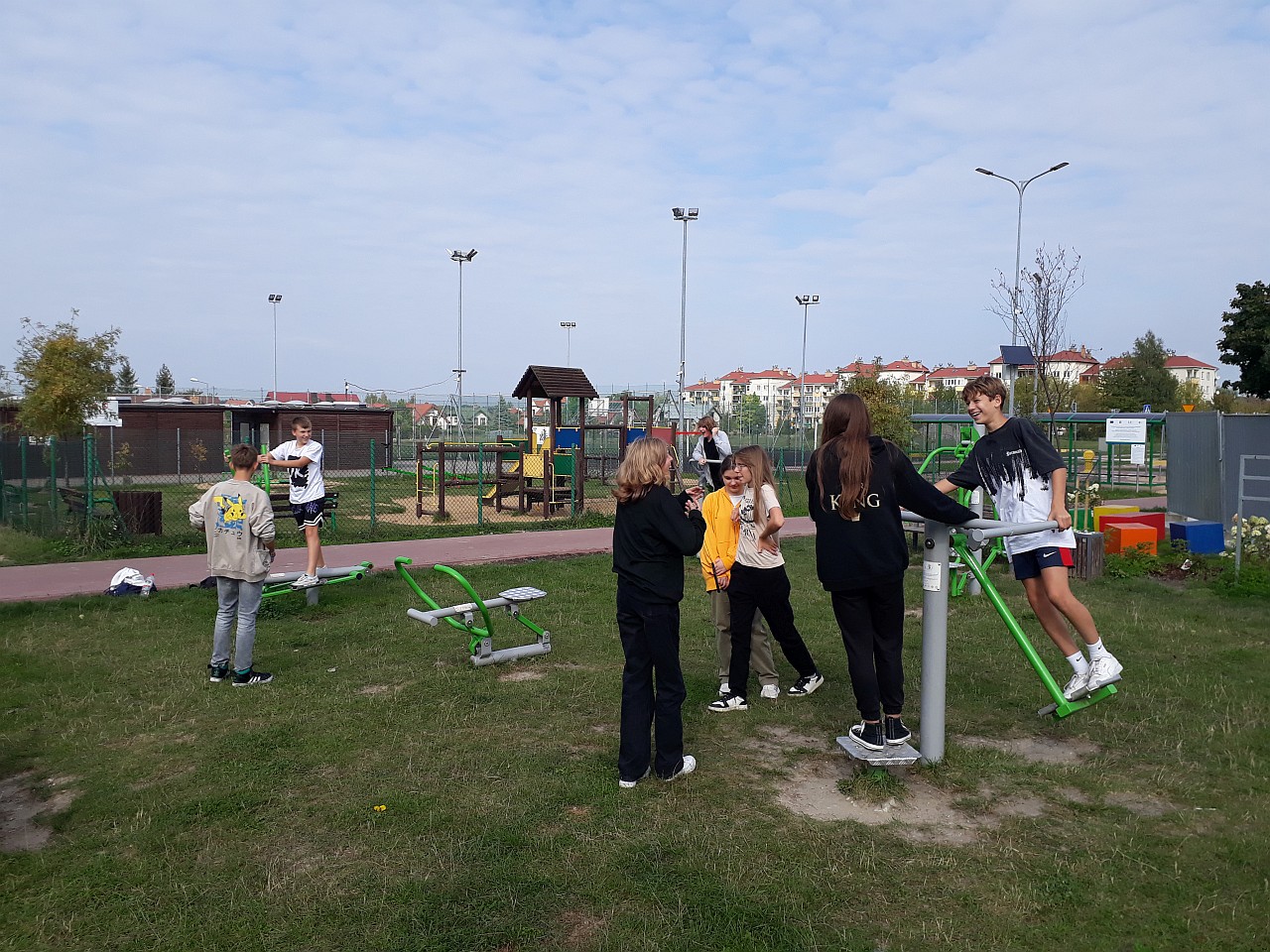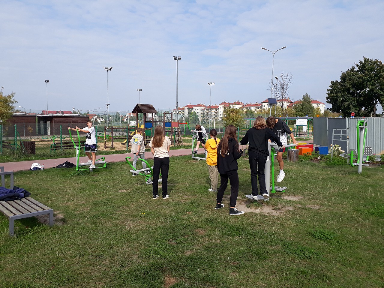 Uczniowie klasy 8 miło i przyjemnie spędzili ten dzień na os. Borek. Na początku wszyscy udali się do Bistro, gdzie spożywano zamówione pizze. Następnie po odpoczynku na orliku trenowano piłkę nożną z nowo zapoznanym kolegą. Ćwiczenia fizyczne były kontynuowane na pobliskiej siłowni na świeżym powietrzu.
