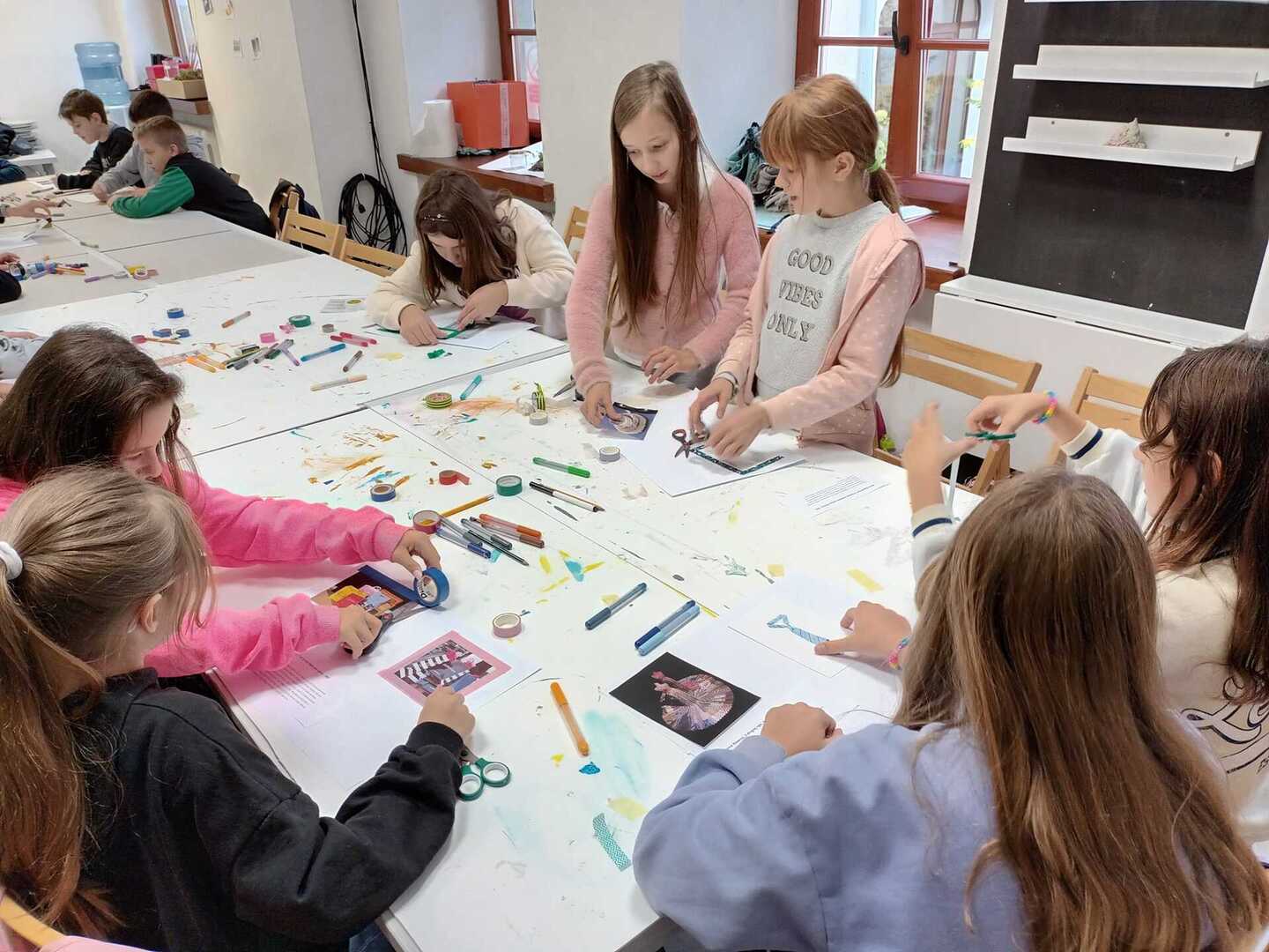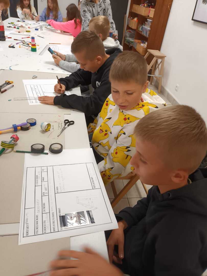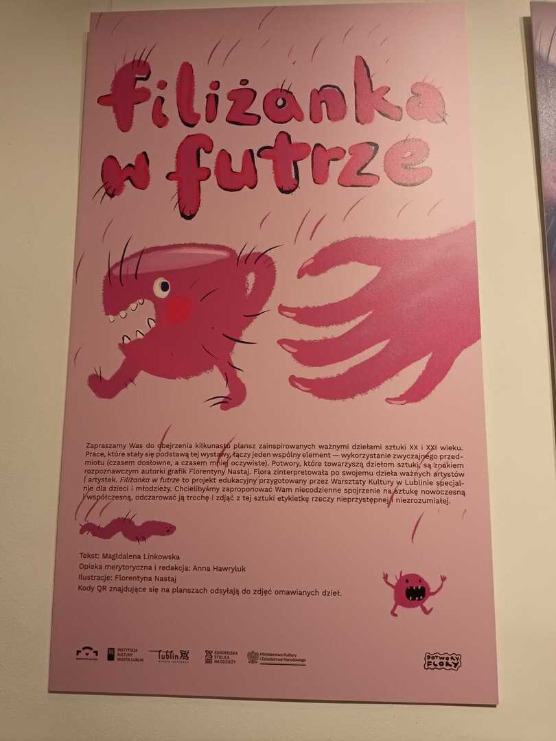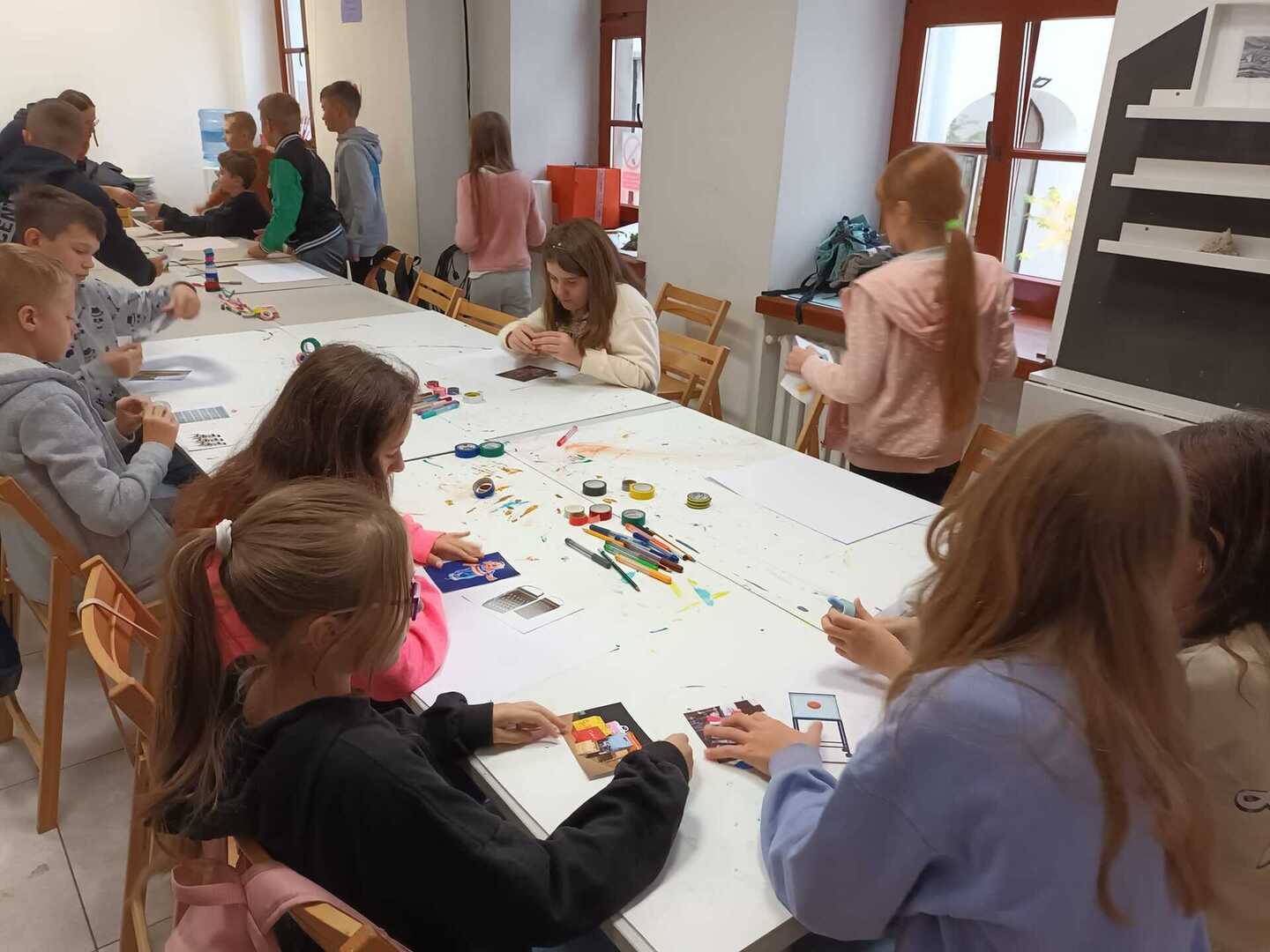 16 października uczniowie klasy V uczestniczyli w zajęciach plastycznych w Warsztatach Kultury na Starym Mieście. Uczniowie obejrzeli kilkanaście prac graficznych Florentyny Nastaj zainspirowanych kluczowymi dziełami sztuki XX i XXI wieku wykorzystującymi lub bazującymi na zwyczajnych przedmiotach. „Filiżanka w futrze” to wystawa i seria warsztatów dla dzieci, młodzieży i dorosłych opartych na temacie „przedmiotu gotowego” w sztuce współczesnej. Uczestnicy warsztatów zmierzyli się z podziałem ilustracji na te, które przedstawiają przedmioty codziennego użytku i te, które są dziełami sztuki. Następnie wykonali plakaty techniką kolażu prezentujące jedno z dzieł sztuki. Kolejnym zadaniem było wykonanie trójpoziomowej prezentacji rzeczy jako dzieła - zdjęcie, rysunek i opis.