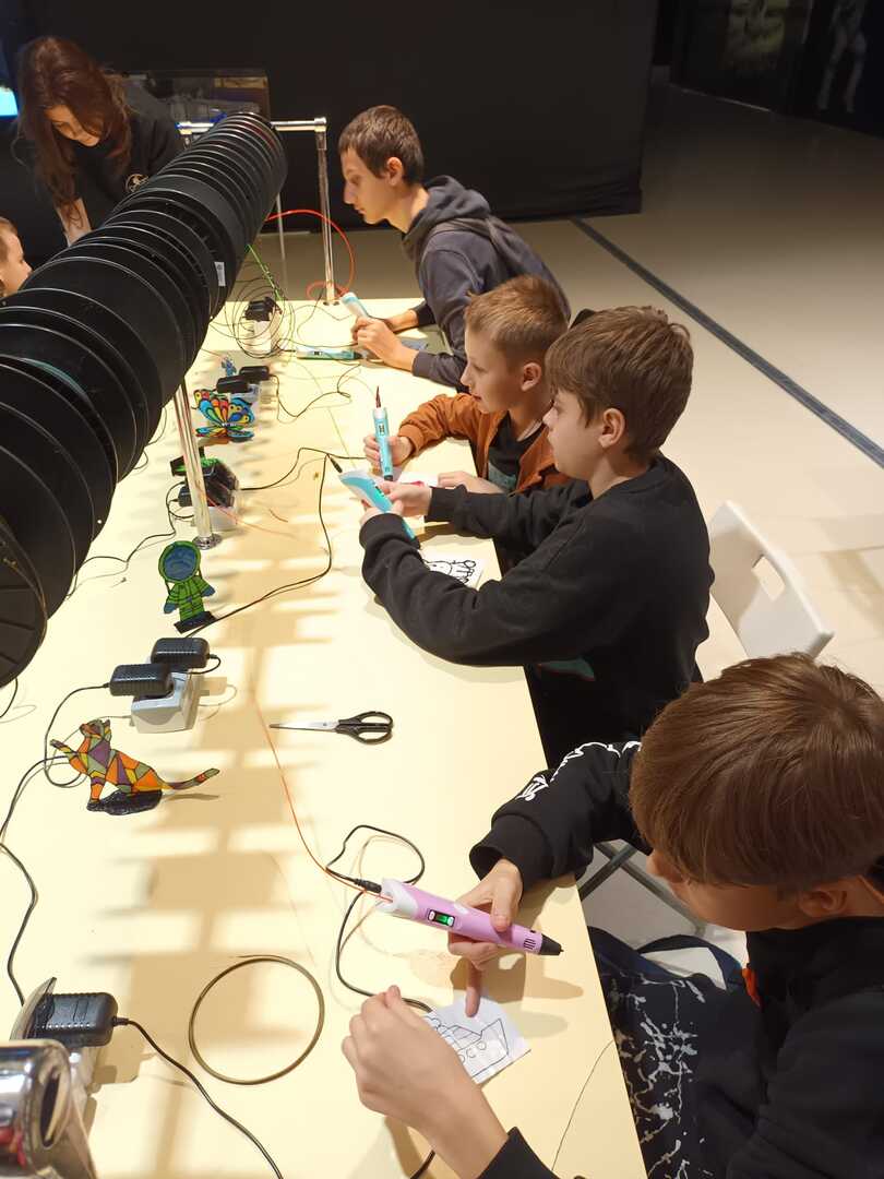 Całość wizyty w Kosmoparku dopełniła część warsztatowa ,podczas której uzniowie mogli m.in. zamknąć swój mikro świat w próbówce lub namalować go w 3D.
