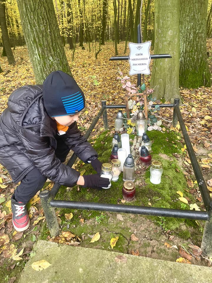 Uczniowie z klas I-III , jak co roku , odwiedzili Grób Nieznanego Żołnierza, znajdujący się się w lesie niedaleko naszej szkoły. Pamięć o zmarłych za ojczyznę bohaterach to ważna część naszej tradycji. Dzieci porządkowały grób i zapaliły znicze, oddając w ten spoób hołd poległemu w walce żołnierzowi.