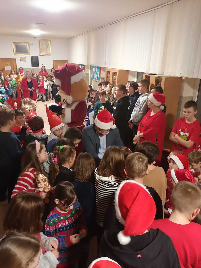 Jak co roku świętowaliśmy w naszej szkole mikołajki. Prezenty i życzenia przyniosły wszystkim wiele radości. Mikołajkowo zaskoczył nas również Wójt Gmina Wólka Pan Edwin Gortat, który odwiedził nas wraz z maskotką Wólkanem, częstując wszystkich uczniów i pracowników cukierkami. Bardzo dziękujemy za wizytę!