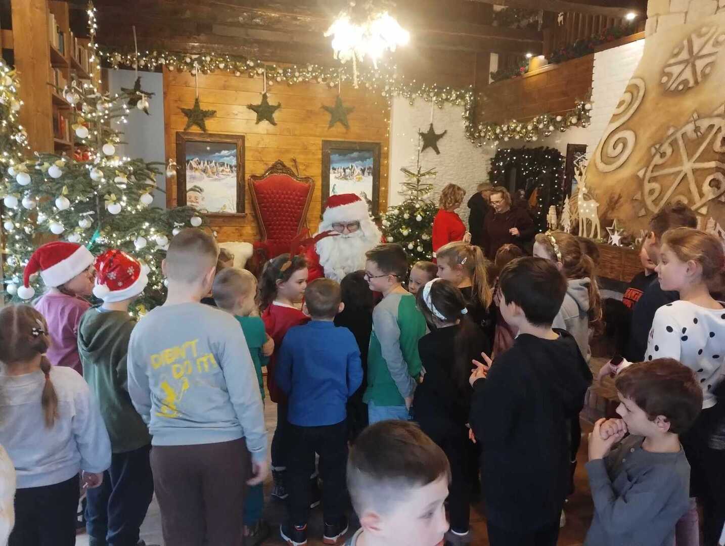 18 grudnia uczniowie klas 1-3 wybrali się na wycieczkę do Bałtowa, gdzie mieści się Wioska Świętego Mikołaja.. Cała wioska była przystrojona kolorowymi światełkami, choinkami i dekoracjami bożonarodzeniowymi. Najpierw przenieśliśmy się do krainy Anny, Elzy i Olafa gdzie nie mogliśmy oderwać wzroku od bajkowej dekoracji. Następnie dekorowaliśmy pierniki, które każdy zabrał do domu. Następnie udaliśmy się na spotkanie ze Świętym Mikołajem, , który z ciepłym uśmiechem przyjmował dzieci, słuchał ich marzeń i wręczał im niewielkie upominki. Mogliśmy również zatańczyć wspólnie z elfikami.. Wioska Świętego Mikołaja w Bałtowie okazała się być doskonałym pomysłem na wyjazd w okresie przedświątecznym.