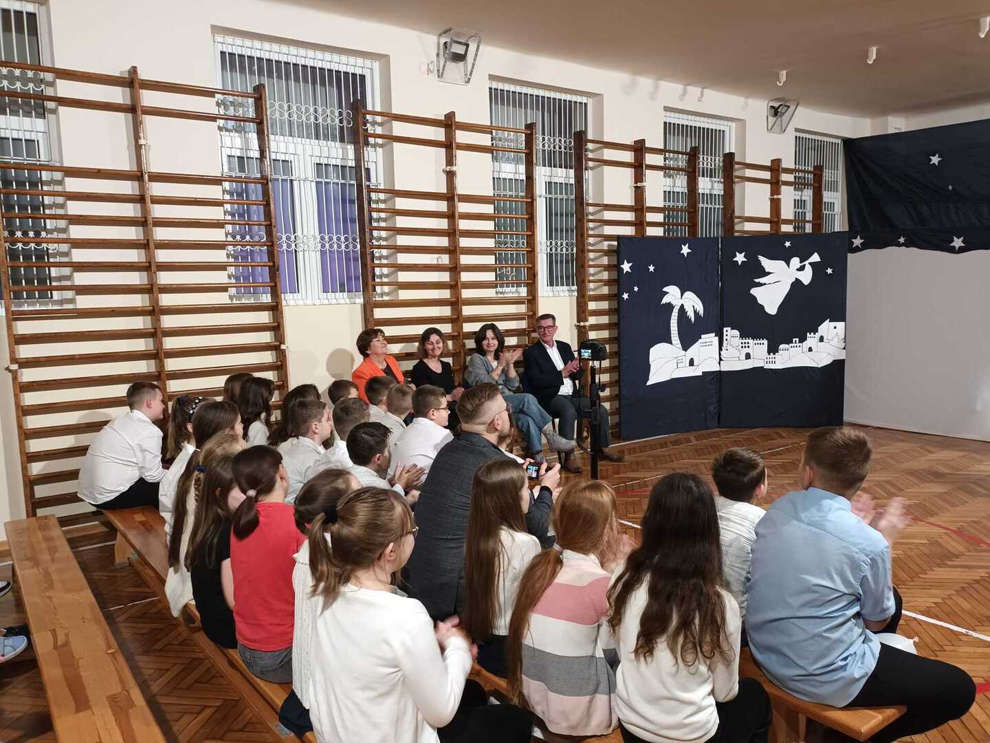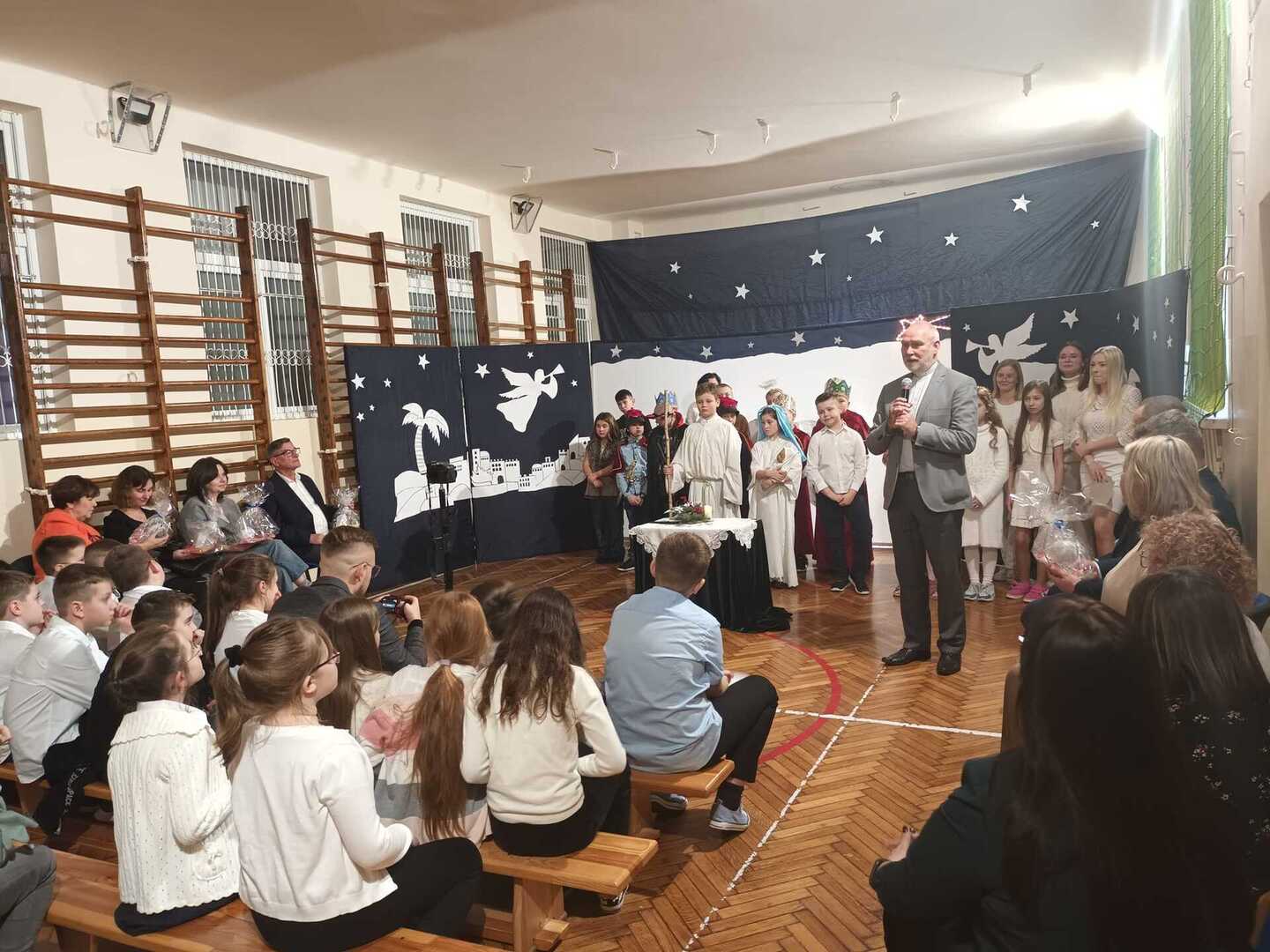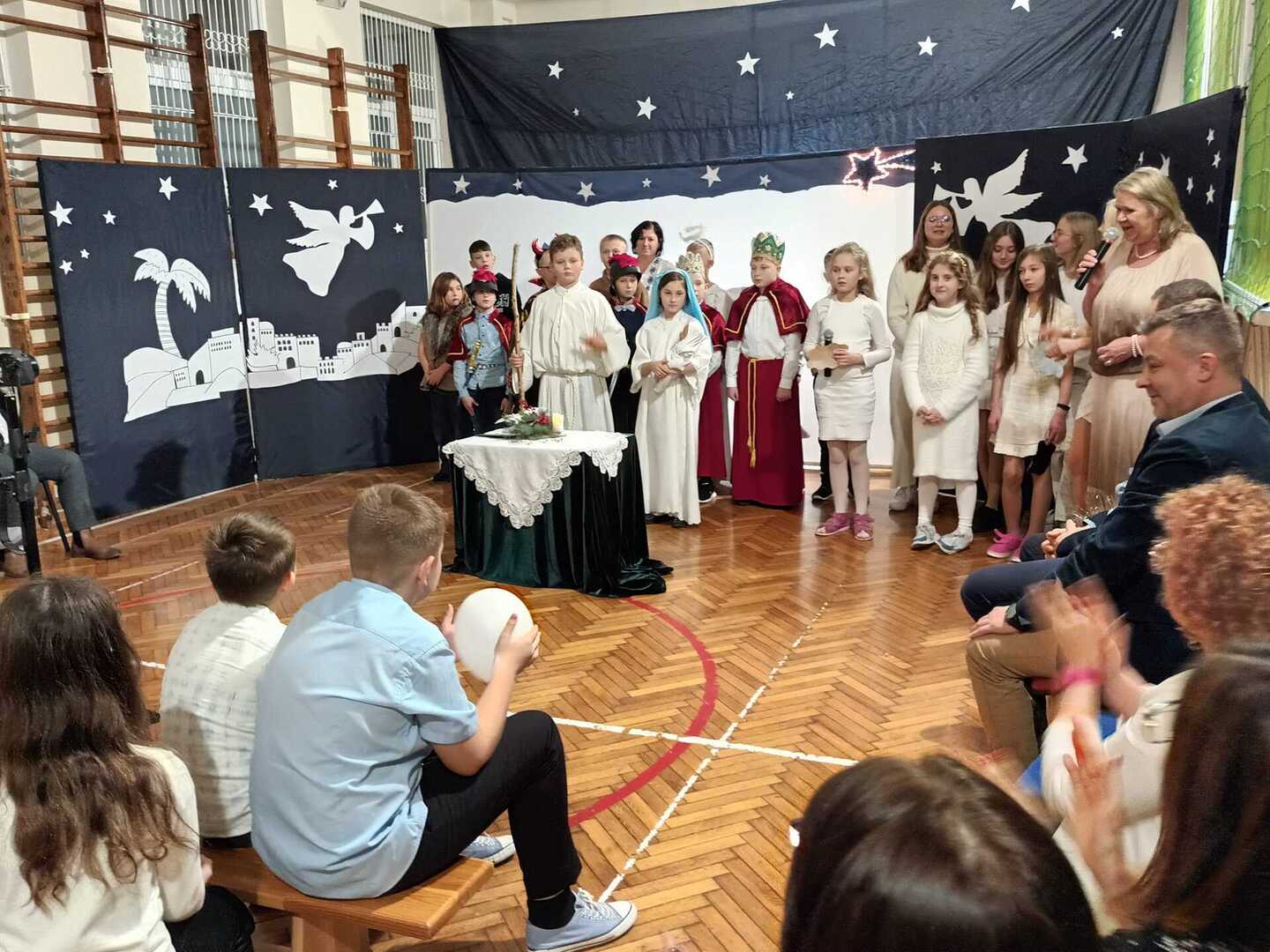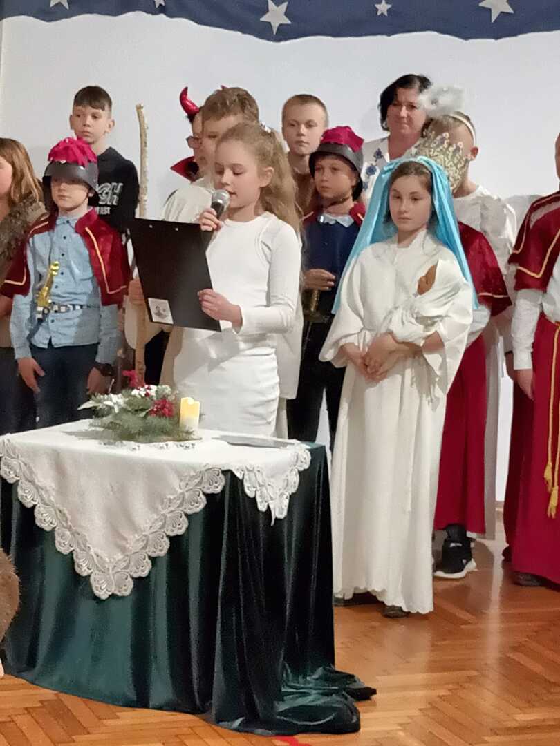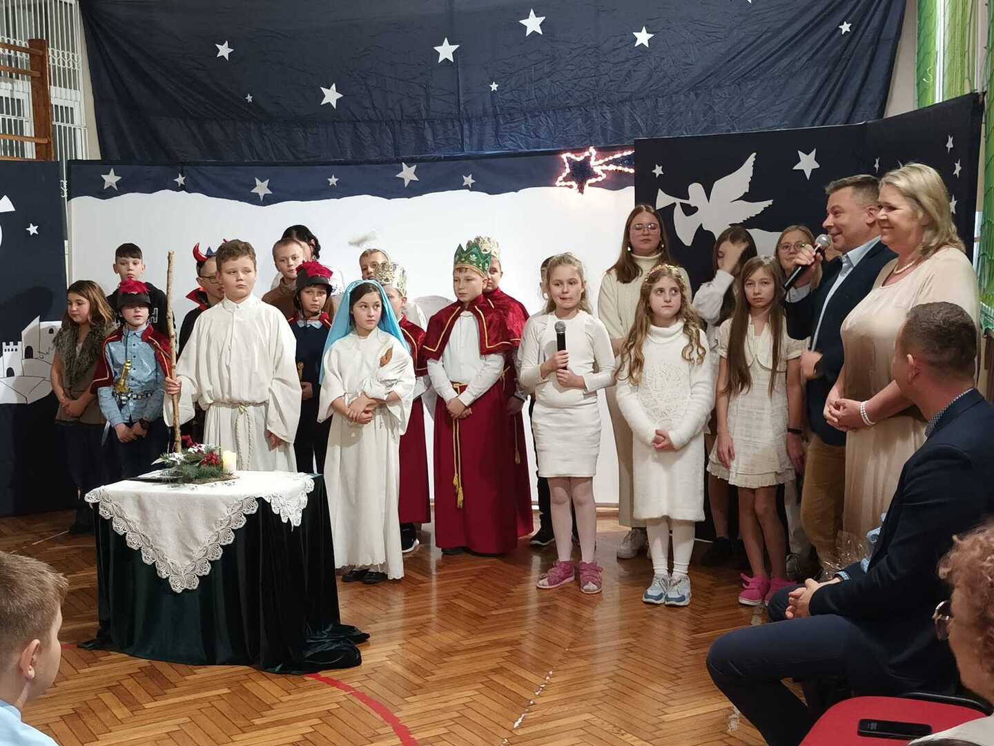 19 grudnia jasełka obejrzeli uczniowie klas I-III. W tym roku przybrały one formę teatru cieni. W nowoczesny sposób opowiedziały o narodzeniu Jezusa. Przedstawienie bez słów wzbogacił piękny śpiew szkolnego zespołu wokalnego. W przedstawieniu bożonarodzeniowym wystąpili uczniowie klasy: 3, 5 i 7 przygotowani przez nauczycielki świetlicy , panie: Agnieszkę Bielak, Agnieszkę Fudalej i Magdalenę Staszczyk, która przygotowała oprawę muzyczną i wokalną. 20 grudnia widowisko mieli okazję zobaczyć uczniowie klas starszych oraz zaproszeni goście: wójt Gminy Wólka Pan Edwin Gortat, Kierownik Referatu ds oświaty Pani Elżbieta Skiba oraz przedstawiciele instytucji zaprzyjaźnionych z naszą szkołą - przedstawicielka Gminnej Biblioteki Publicznej w Wólce - Pani Anna Bobel - Żydek, przedstawiciele Centro- chem i Kamieniarstwo Grantur i Pan Konrad Krupski Rozmaryn Dom Weselny. Teatr cieni podobał się wszystkim, a oprawa muzyczna wzruszyła oglądających.