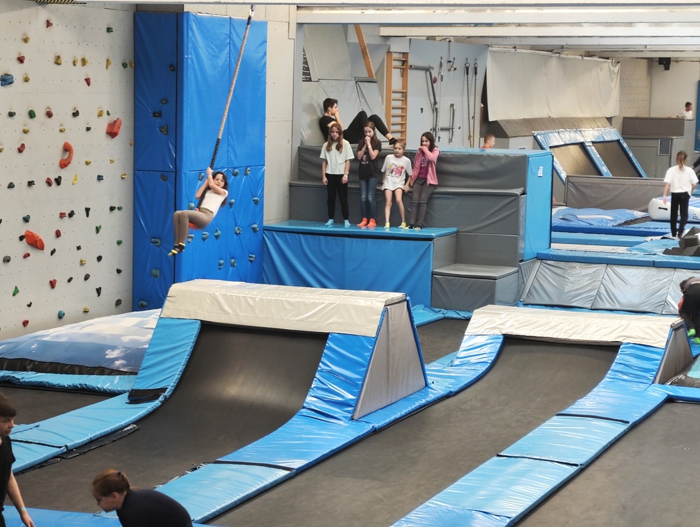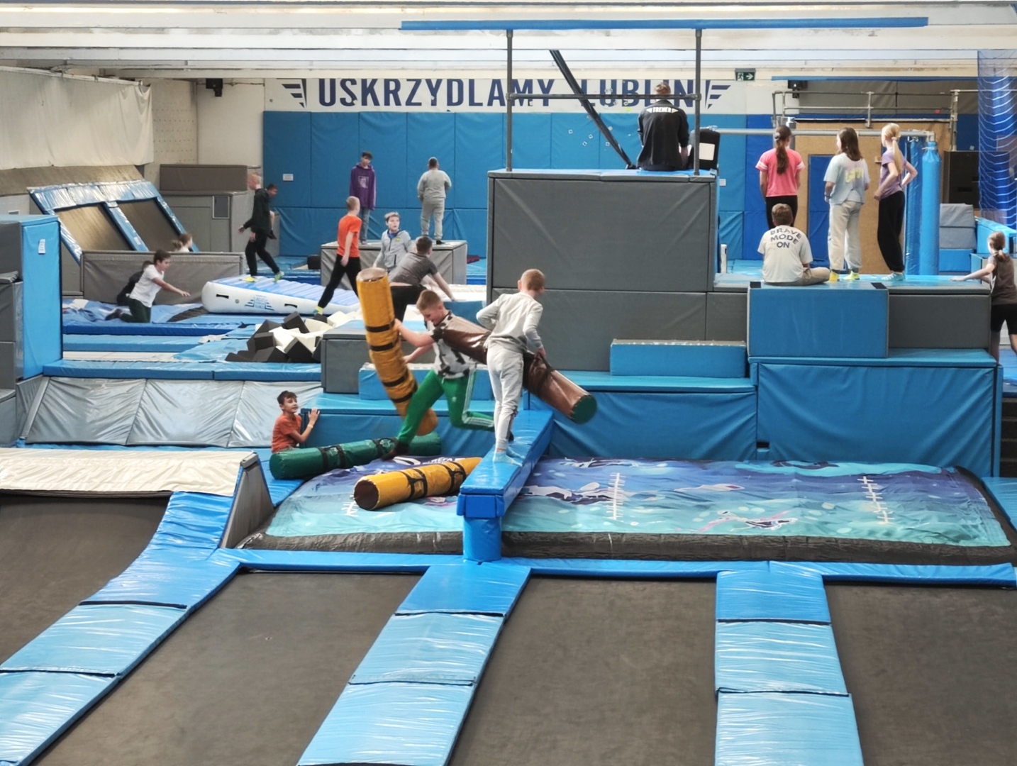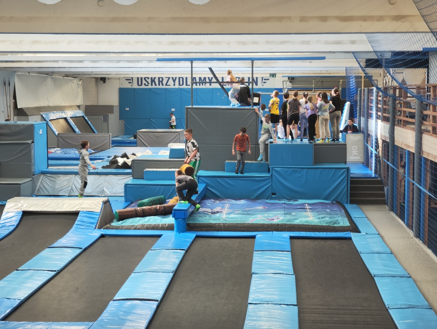 Uczniowie klasy IV i V w dniu 26 marca 2024 w czasie zajęć w lubelskiej Strefie Wyskokach Lotów pokazali, że są ze sportem "za pan brat".