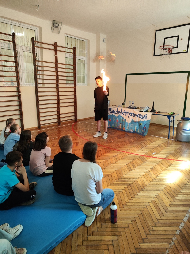 12 kwietnia w naszej szkole odbyła się niecodzienna lekcja pt. ” Poczuj chemię do fizyki” prowadzona przez grupę Zaelektryzowani.Prowadzący zaprezentował widowiskowe eksperymenty i doświadczenia.