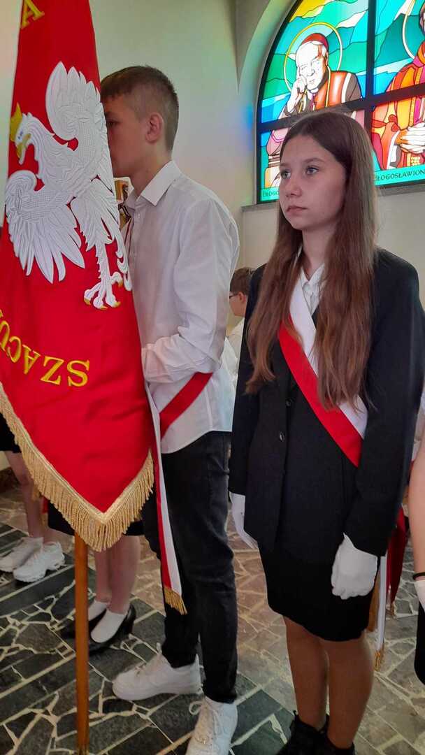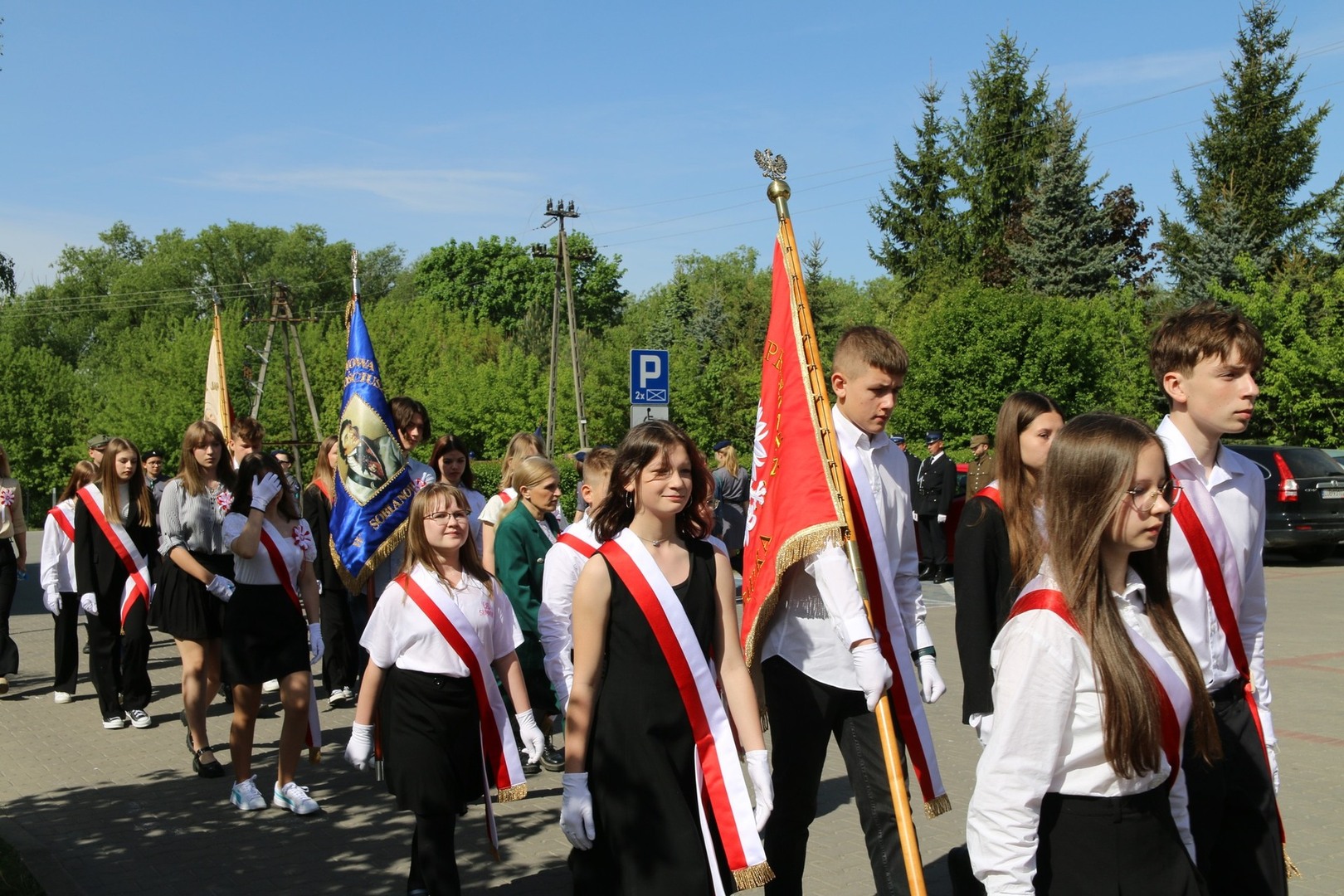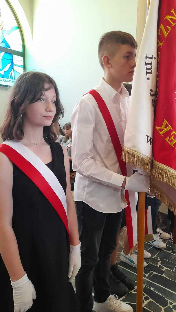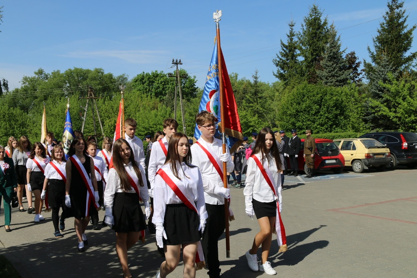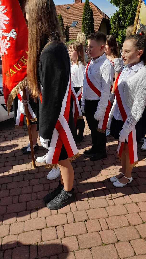 Nasi uczniowie, jak co roku, wzięli udział w  obchodach rocznicy uchwalenia Konstytucji 3 maja, które odbyły się przy Urzędzie Gminy Wólka  w piątek, 3 maja.