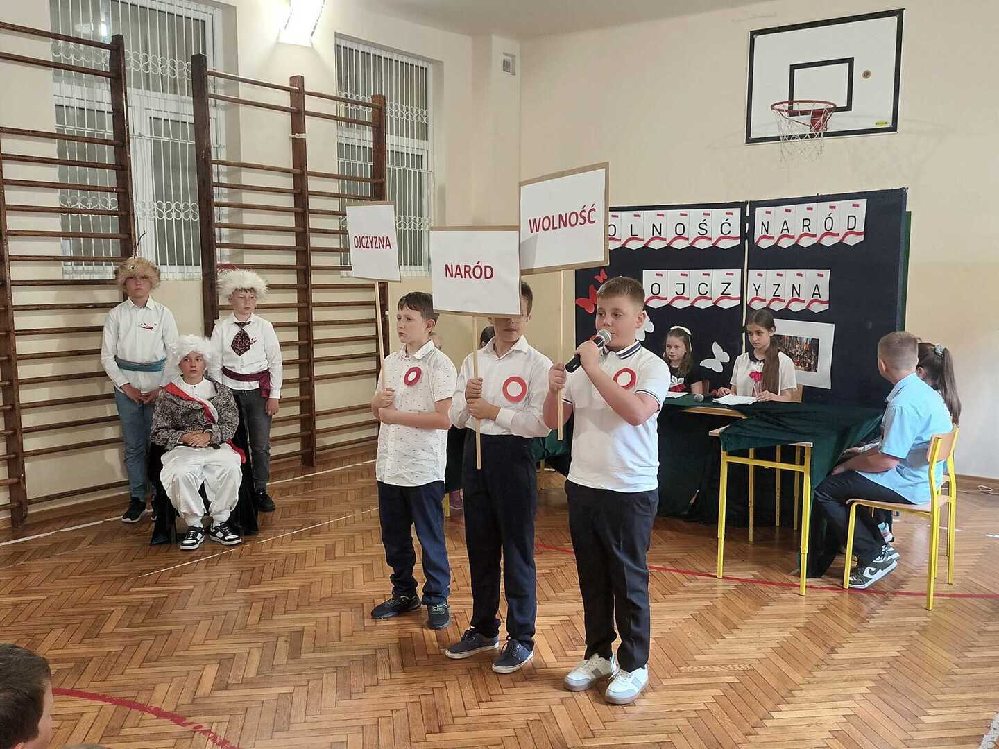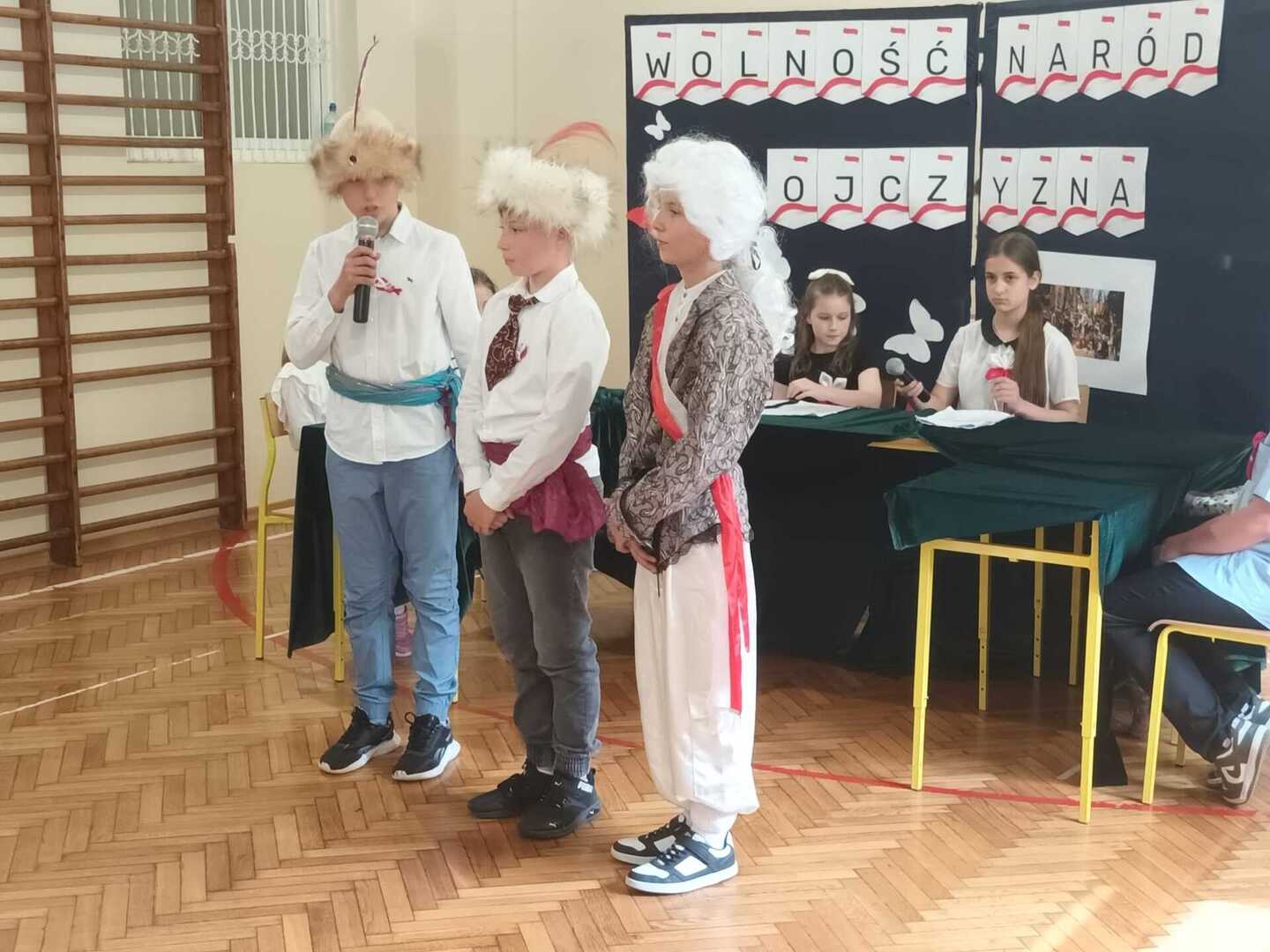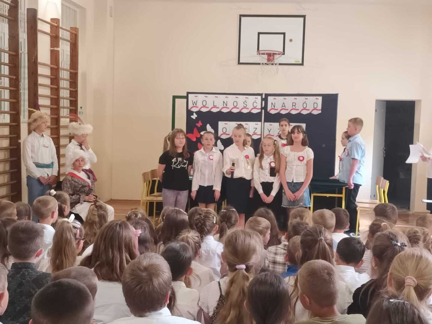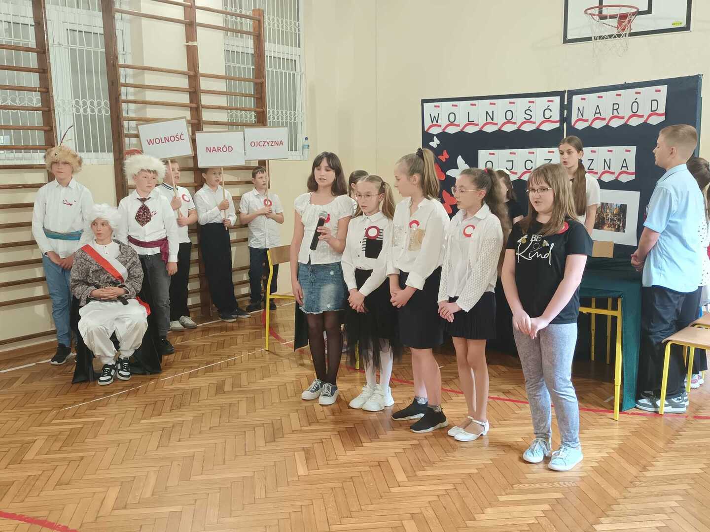 W coroczny kalendarz uroczystości w naszej szkole wpisana jest akademia z okazji Rocznicy Uchwalenia Konstytucji 3 Maja. Chcąc przybliżyć uczniom to ważne wydarzenie z historii naszego kraju, klasa V i IV przygotowały montaż słowno-muzyczny. Była to okazja do refleksji nad wydarzeniami sprzed 233 lat, do pielęgnowania patriotyzmu wśród najmłodszych oraz do przeżywania dumy z tego, że jest się Polakiem.