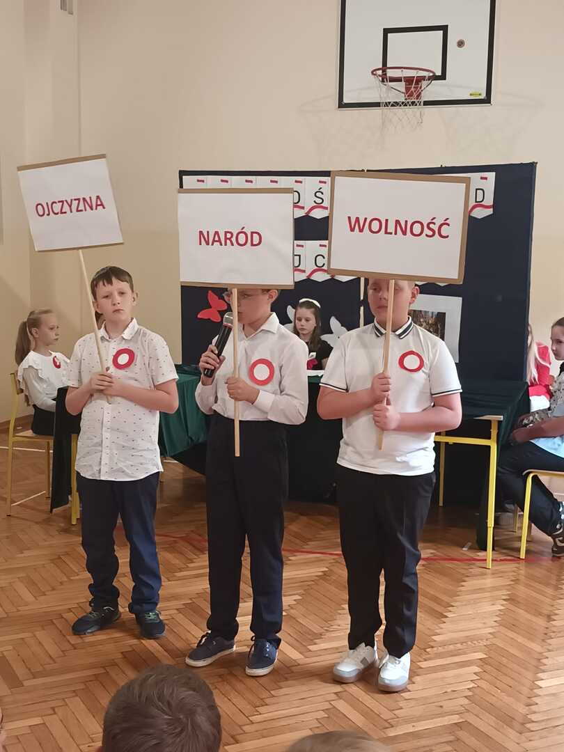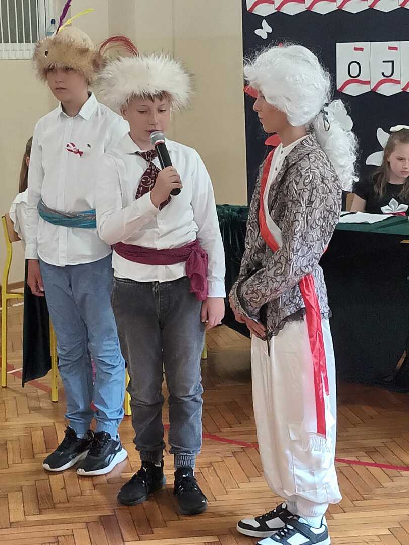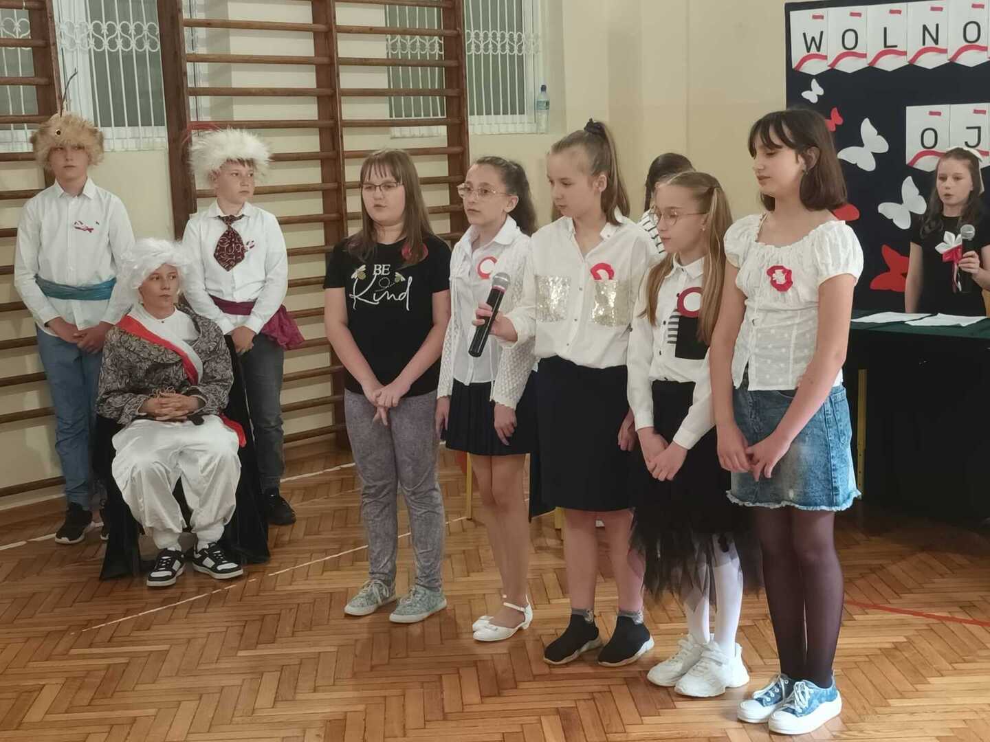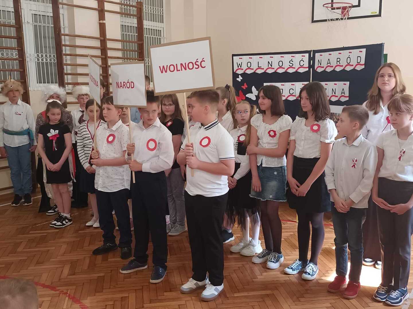 W coroczny kalendarz uroczystości w naszej szkole wpisana jest akademia z okazji Rocznicy Uchwalenia Konstytucji 3 Maja. Chcąc przybliżyć uczniom to ważne wydarzenie z historii naszego kraju, klasa V i IV przygotowały montaż słowno-muzyczny. Była to okazja do refleksji nad wydarzeniami sprzed 233 lat, do pielęgnowania patriotyzmu wśród najmłodszych oraz do przeżywania dumy z tego, że jest się Polakiem.