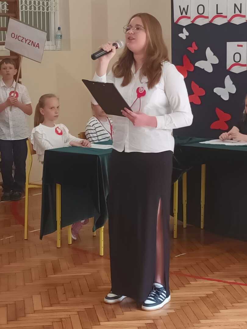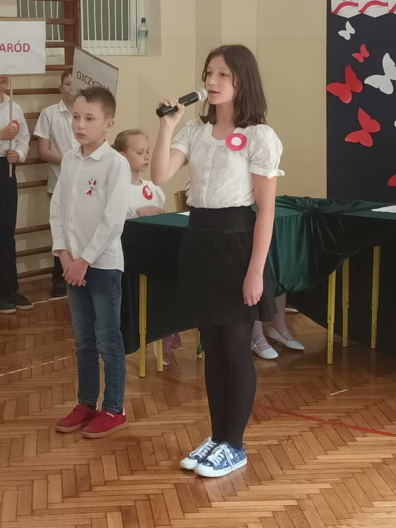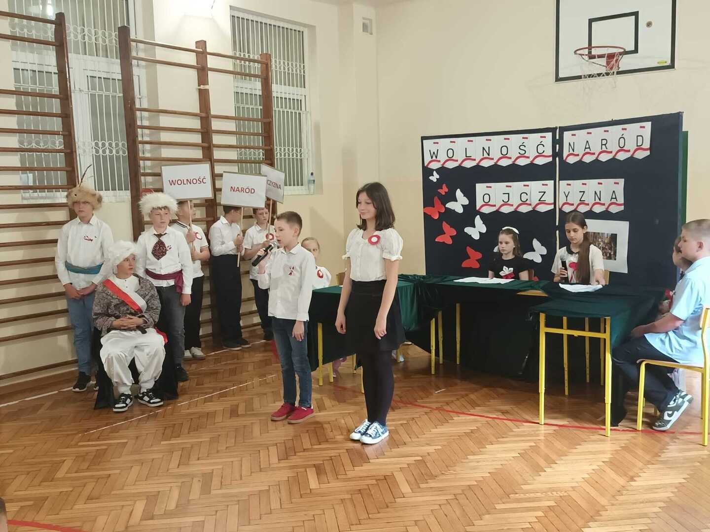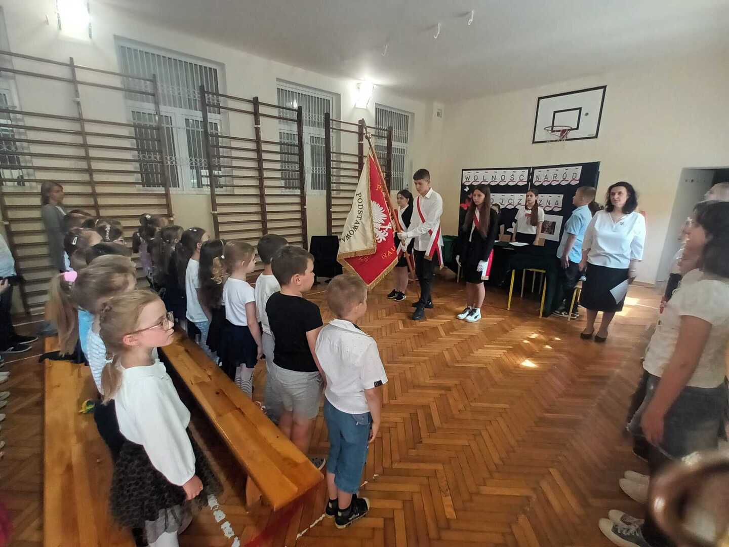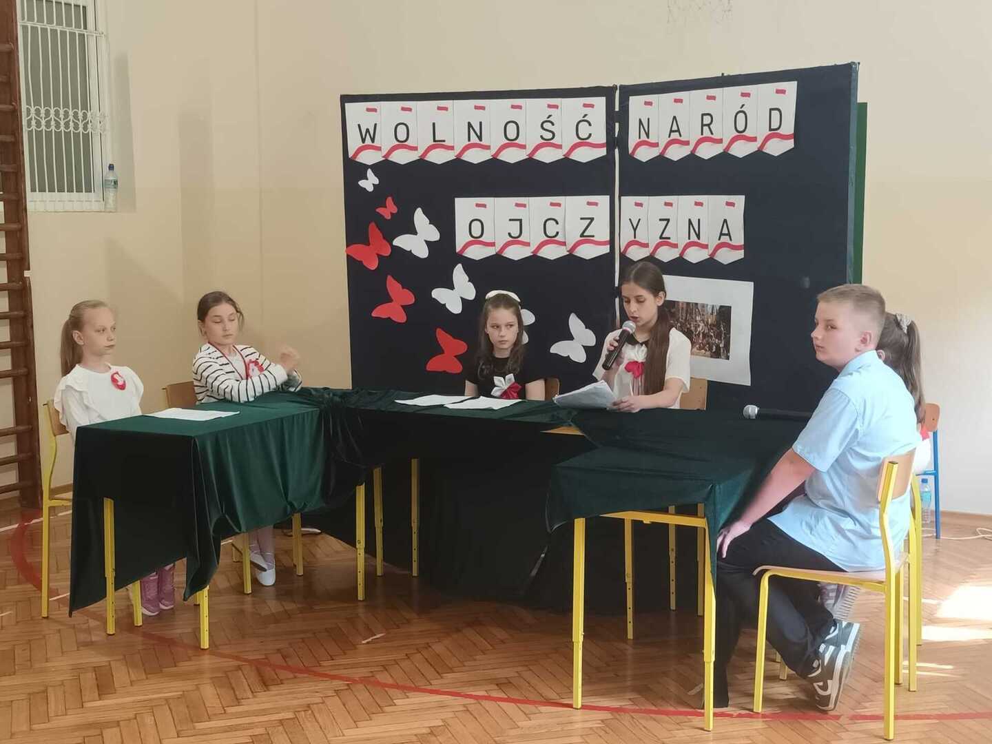 W coroczny kalendarz uroczystości w naszej szkole wpisana jest akademia z okazji Rocznicy Uchwalenia Konstytucji 3 Maja. Chcąc przybliżyć uczniom to ważne wydarzenie z historii naszego kraju, klasa V i IV przygotowały montaż słowno-muzyczny. Była to okazja do refleksji nad wydarzeniami sprzed 233 lat, do pielęgnowania patriotyzmu wśród najmłodszych oraz do przeżywania dumy z tego, że jest się Polakiem.