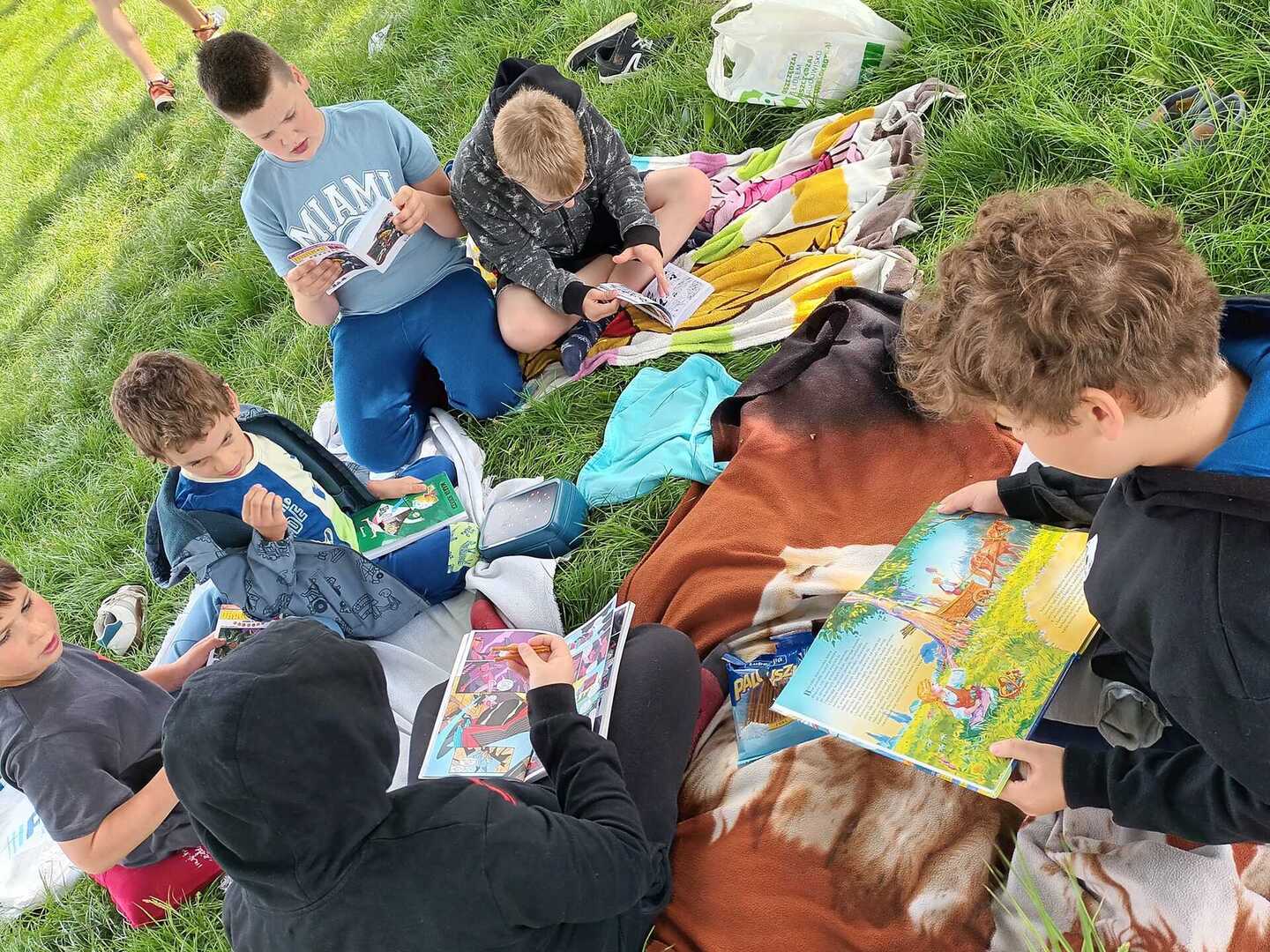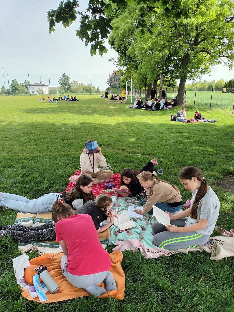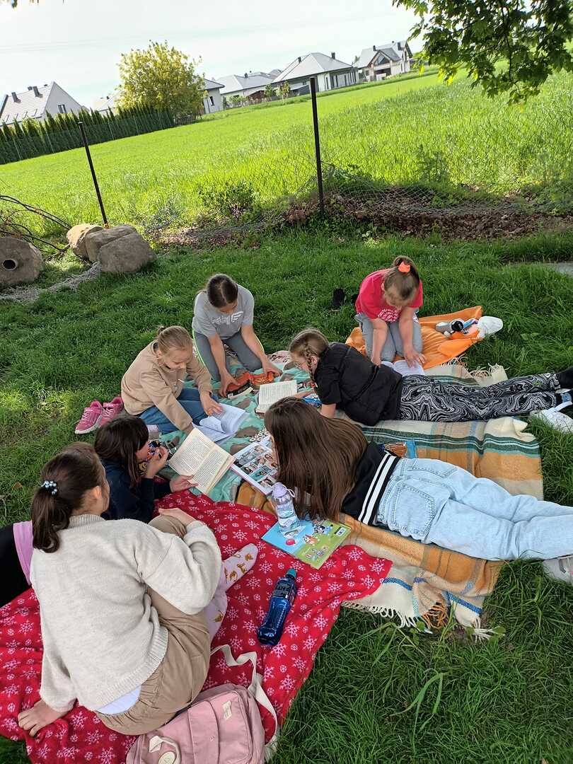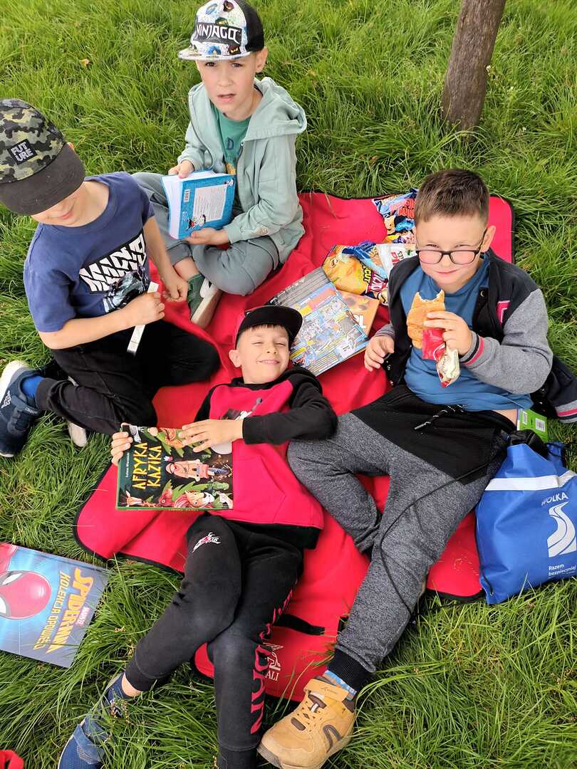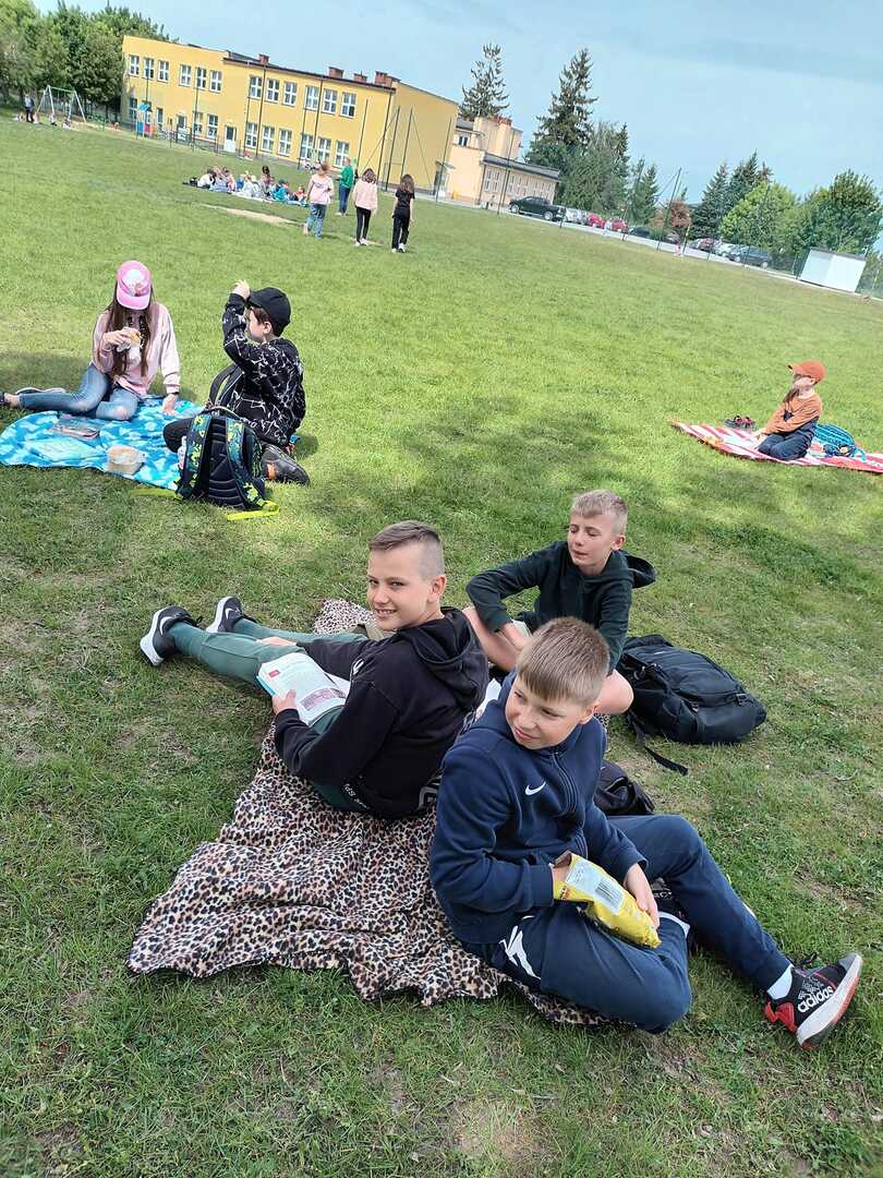 10 maja wszyscy uczniowie zabrali ze sobą do szkoły: koce, przekąski i książki, aby wspólnie urządzić PIKNIK Z KSIĄŻKĄ. Chętne osoby wcieliły się tego dnia w bohaterów ulubionych lektur.