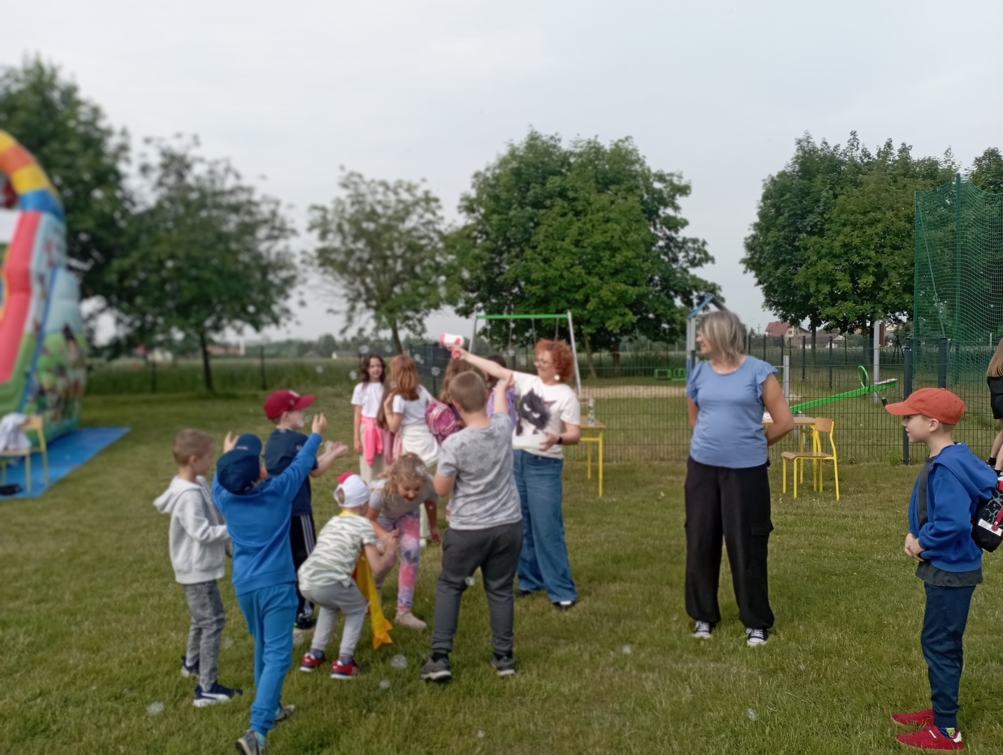 6 czerwca świętowaliśmy w naszej szkole Dzień Dziecka. Liczne atrakcje: dmuchaniec, Konkurs Mam Talent dla klas I- III, wyrzutnia z pianą, malowanie buziek i tatuaże, kolorowanki i gry XXL, bańki, turniej piłkarski zachwyciły dużych i małych. Nie zabrakło oczywiście słodkiego poczęstunku i kiełbasek z grilla. Szczególne zainteresowanie wzbudziła możliwość obejrzenia wnętrza wozu strażackiego oraz przymierzenia kombinezonu strażackiego. Dziękujemy naszym niezawodnym strażakom z OSP w Turce, a szczególnie Panu Tadeuszowi Gułasiowi za pomoc. O naszej uroczystości, jak co roku, pamiętał pan Edwin Gortat, wójt Gminy Wólka, który wspólnie z panią dyrektor Beatą Sobczak obserwował zabawę. Cieszymy się, że dzięki zaangażowaniu rodziców oraz naszych sponsorów dzieci bawiły się tak wspaniale.