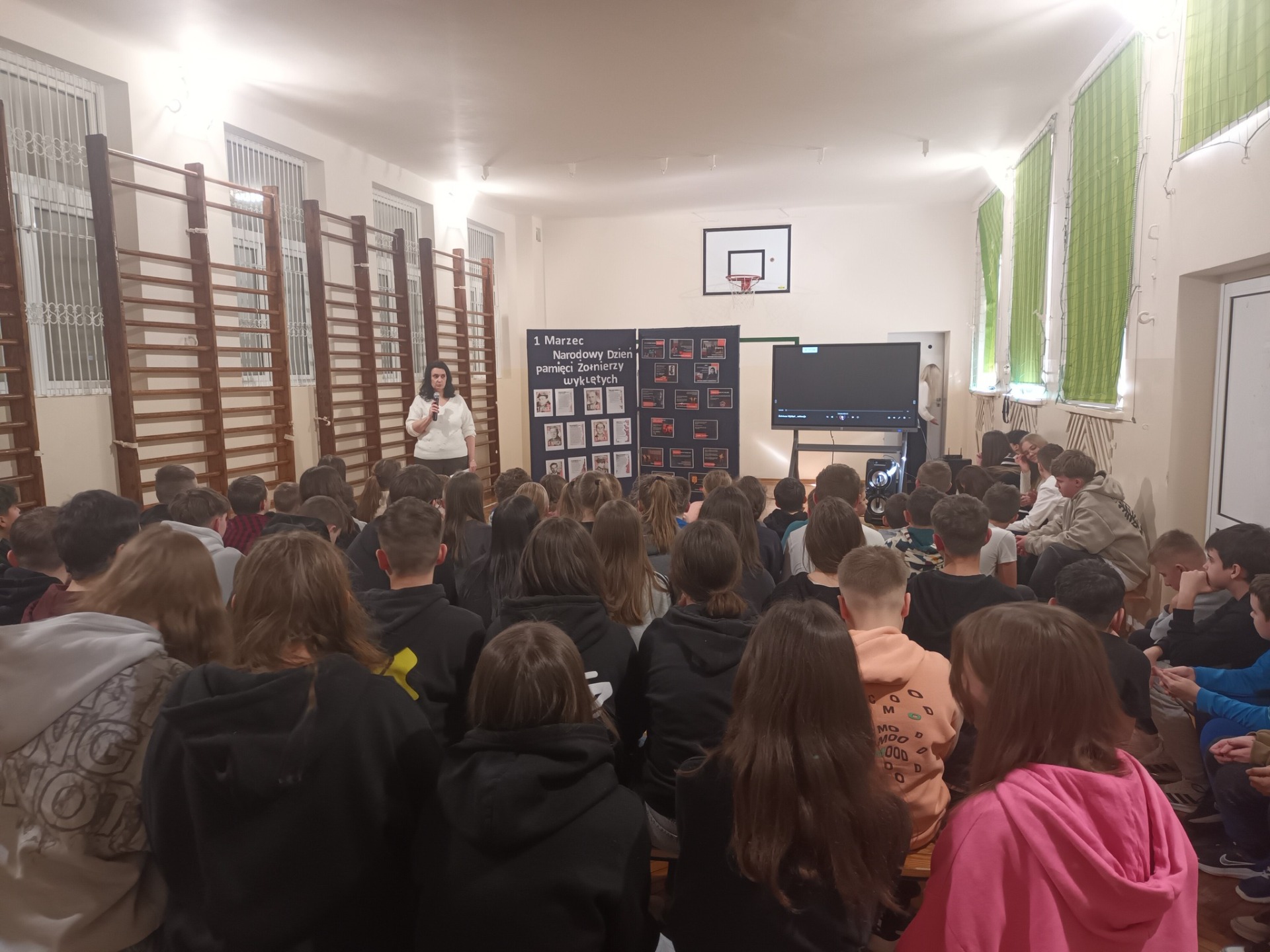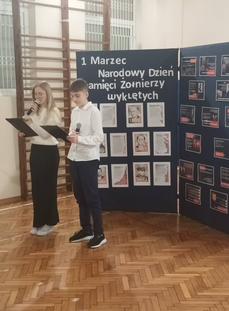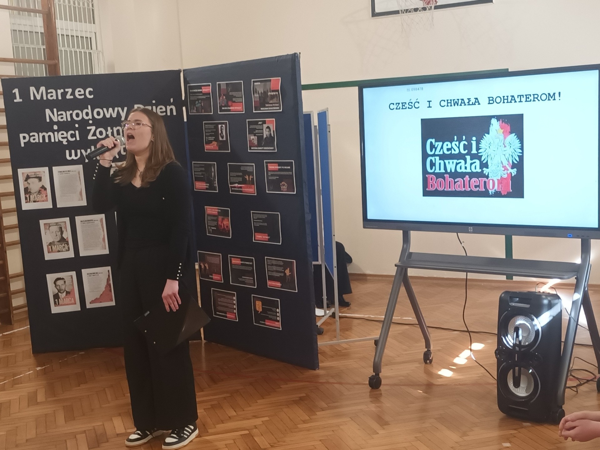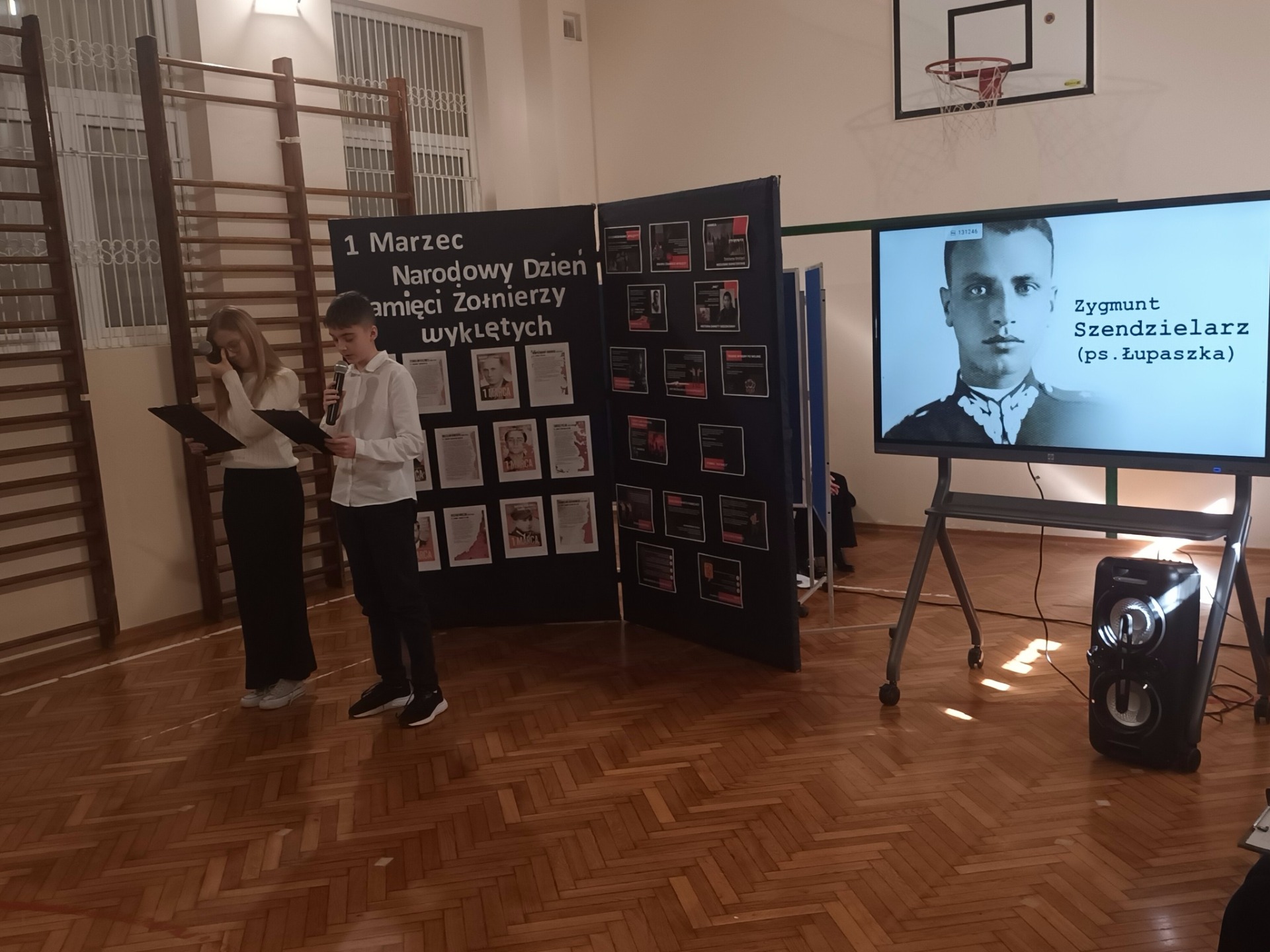 W dniu 5 marca w naszej szkole odbył się apel z okazji Narodowego Dnia Pamięci Żołnierzy Wyklętych. Żołnierze Wyklęci często zwani Żołnierzami Niezłomnymi w ramach ruchu partyzanckiego, stawiali opór sowietyzacji Polski i podporządkowaniu jej ZSRR, toczyli walkę ze służbami bezpieczeństwa ZSRR i podporządkowanymi im służbami w Polsce. Dzień 1 marca poświęcony jest polskim żołnierzom antykomunistycznego i niepodległościowego podziemia z lat 1944 - 1963.
