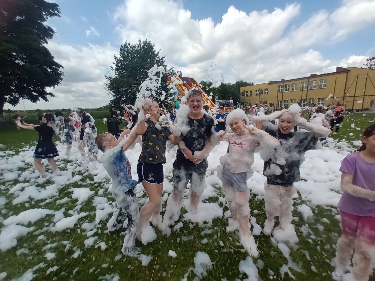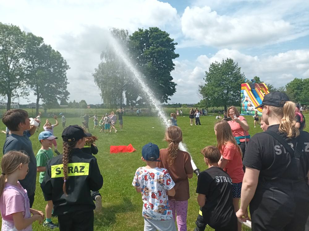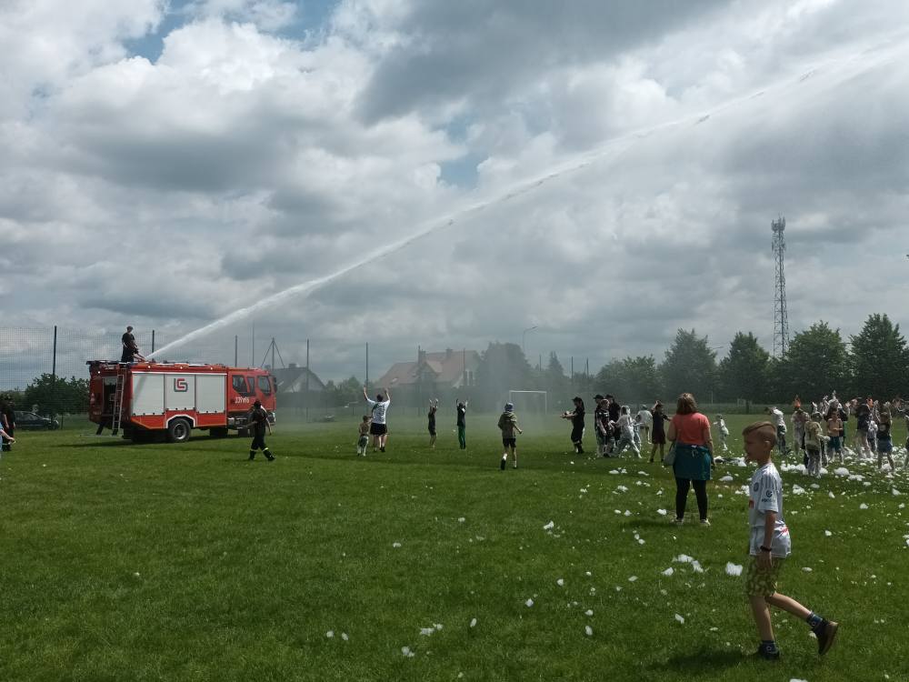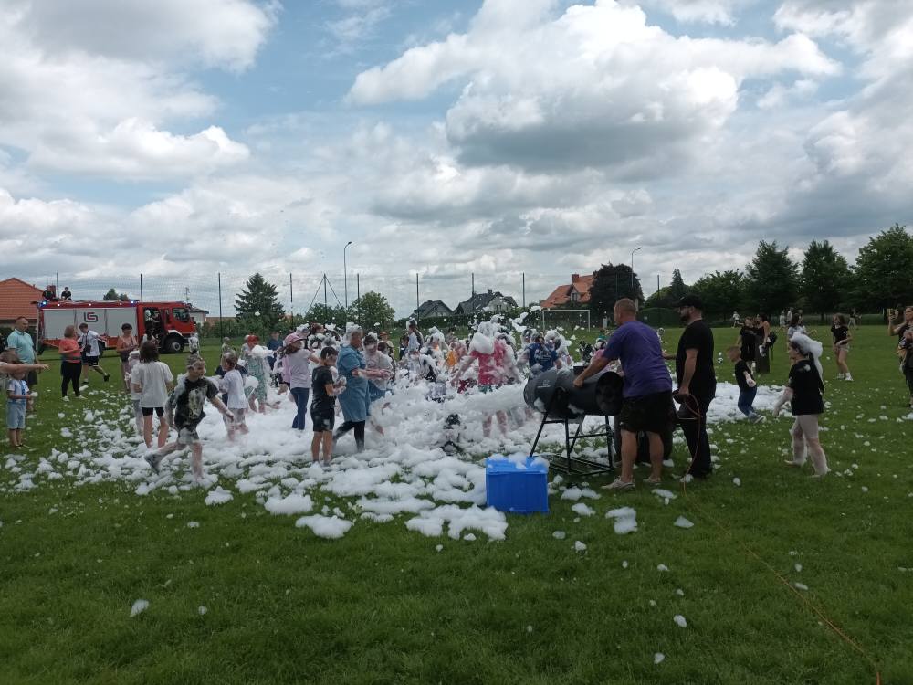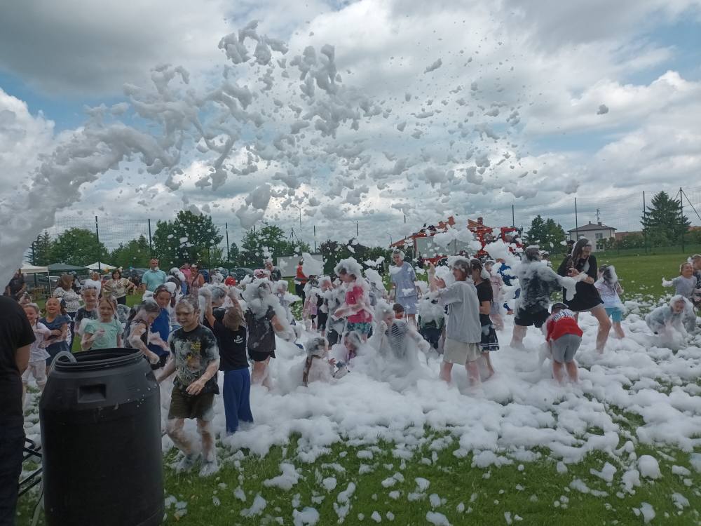 2 czerwca obchodziliśmy Dzień Dziecka w naszej szkole. Wszystkim podobały się liczne atrakcje: ogromny dmuchaniec, zajęcia plastyczne, tatuaże, animacje dla dzieci oraz zawody sportowe. Szczegółne zainteresowanie wzbudził wóz strażacki oraz wyrzutnia piany. Nie zabrakło także grilla z kiełbaskami i waty cukrowej dla wielbicieli słodyczy. Wszyscy bawili się naprawdę świetnie!