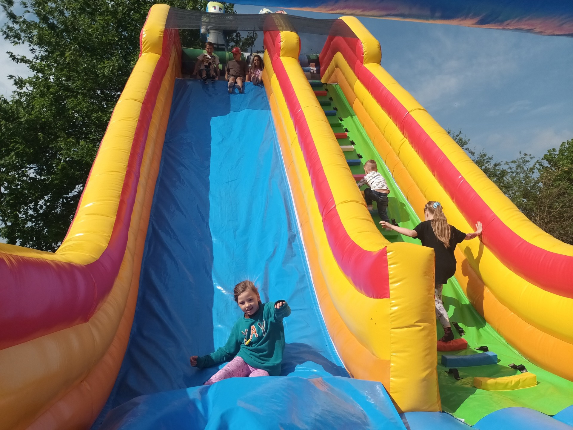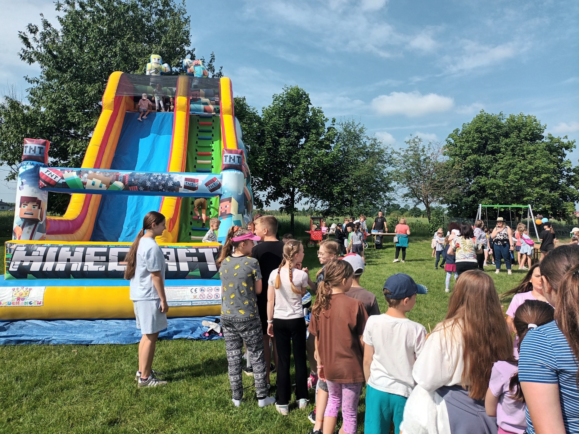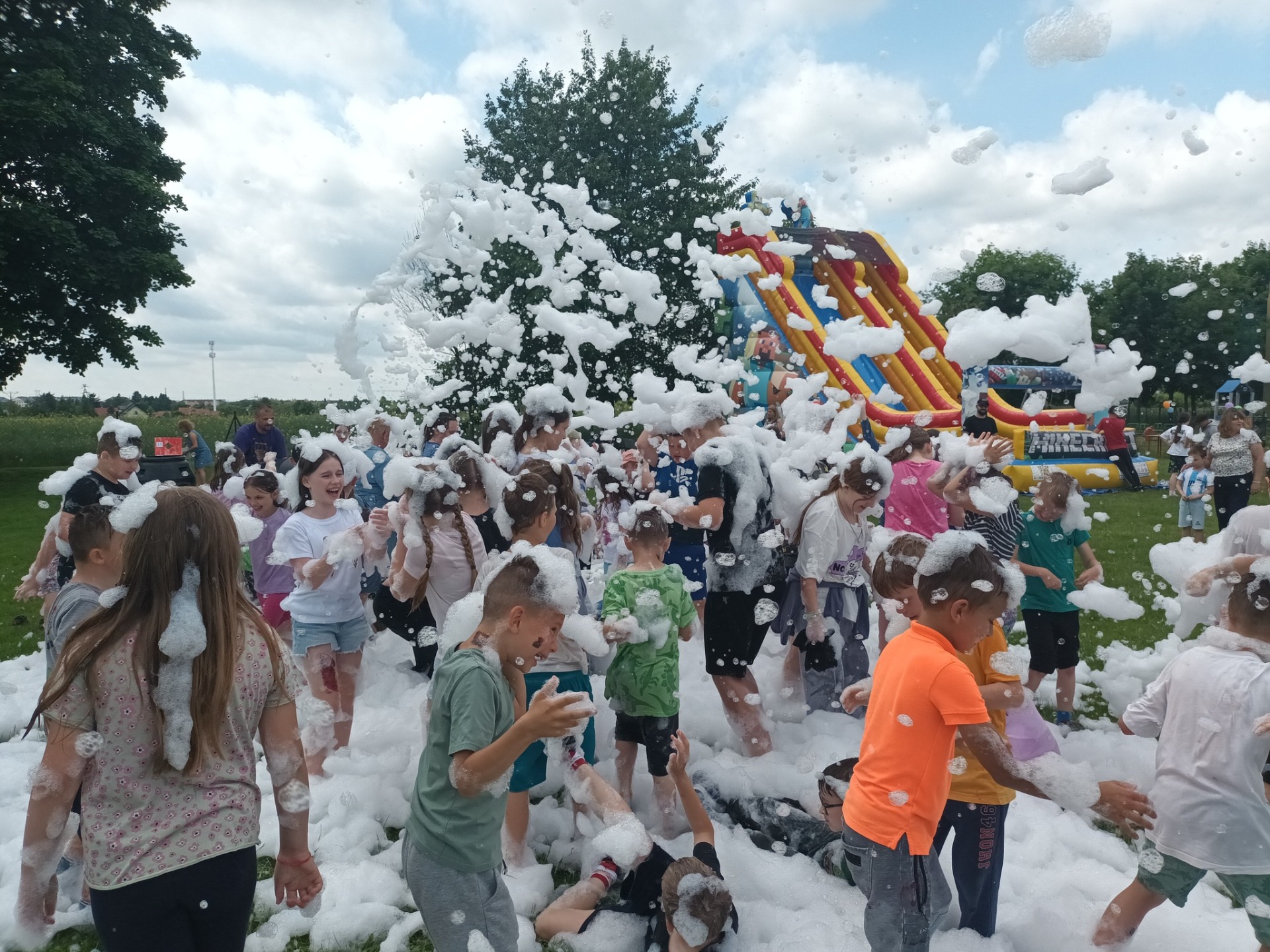 2 czerwca obchodziliśmy Dzień Dziecka w naszej szkole. Wszystkim podobały się liczne atrakcje: ogromny dmuchaniec, zajęcia plastyczne, tatuaże, animacje dla dzieci oraz zawody sportowe. Szczegółne zainteresowanie wzbudził wóz strażacki oraz wyrzutnia piany. Nie zabrakło także grilla z kiełbaskami i waty cukrowej dla wielbicieli słodyczy. Wszyscy bawili się naprawdę świetnie!