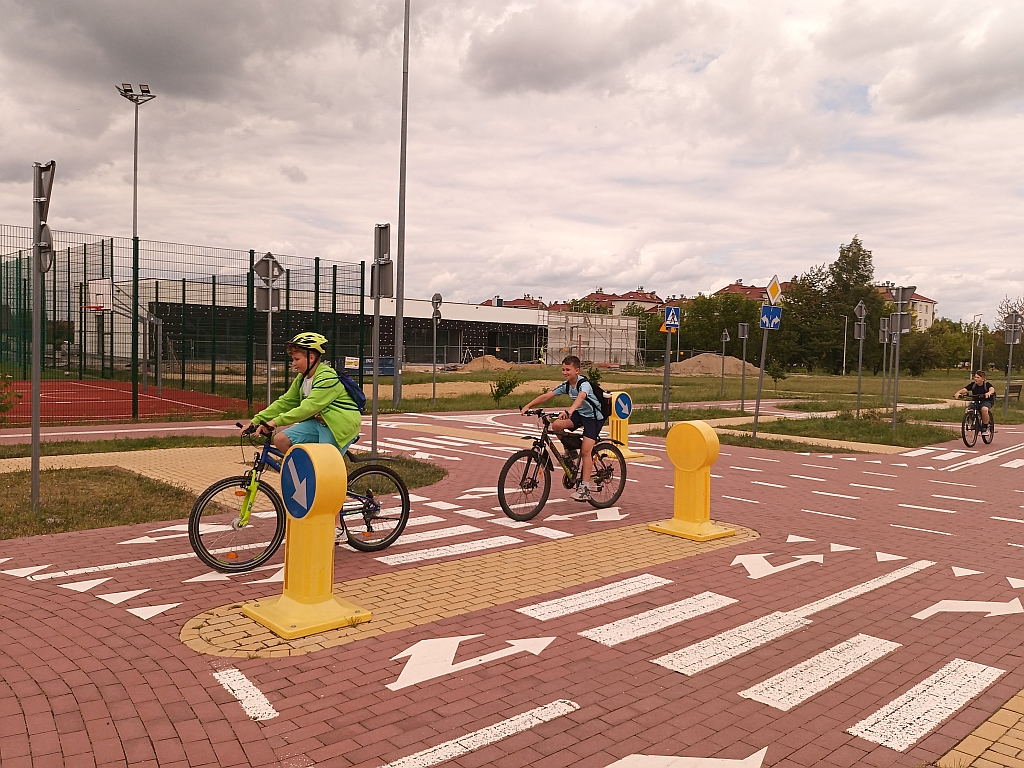 24 czerwca 2025 r. uczniowie klasy 4 pod opieką wychowawcy i nauczyciela techniki udali się na os. Borek, gdzie na miasteczku ruchu drogowego odbył się egzamin praktyczny na kartę rowerową.